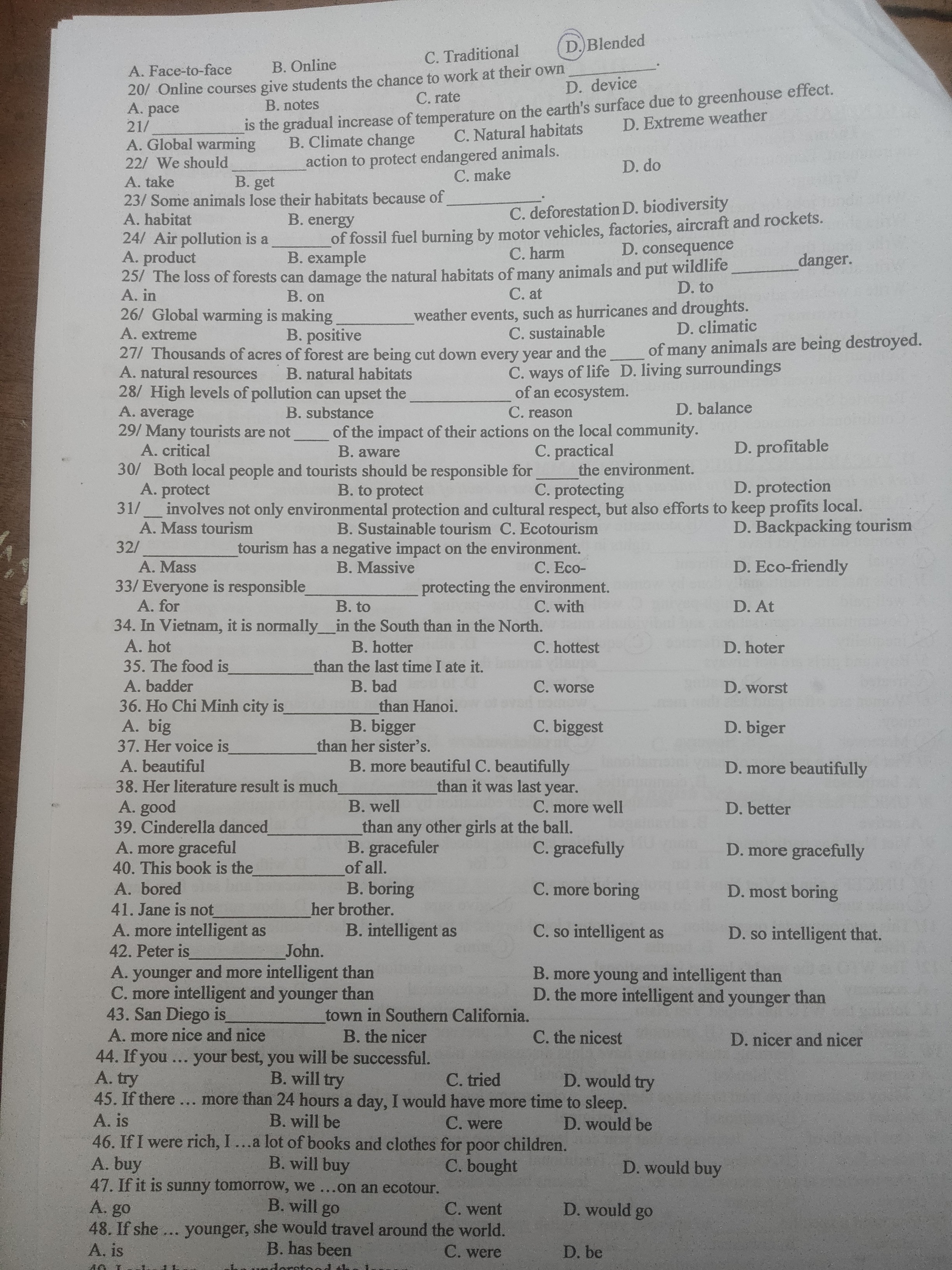 20A, 21A, 22A, 23C, 24D, 25A, 26A, 27B, 28D, 29B, 30C, 31B, 32A, 33A, 34B, 35C, 36B, 37D, 38D, 39D,40D, 41C, 42A, 43C, 44A,45C,46D,47B,48C