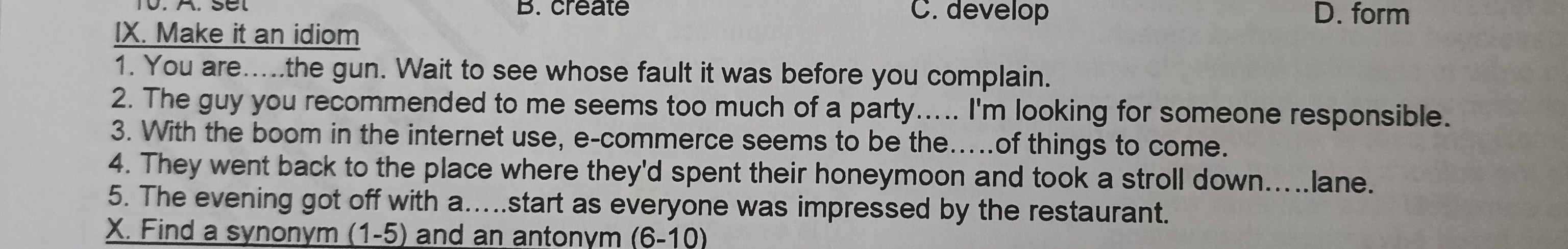 5. The evening got off with a flying start as everyone was impressed by the restaurant. (idiom)