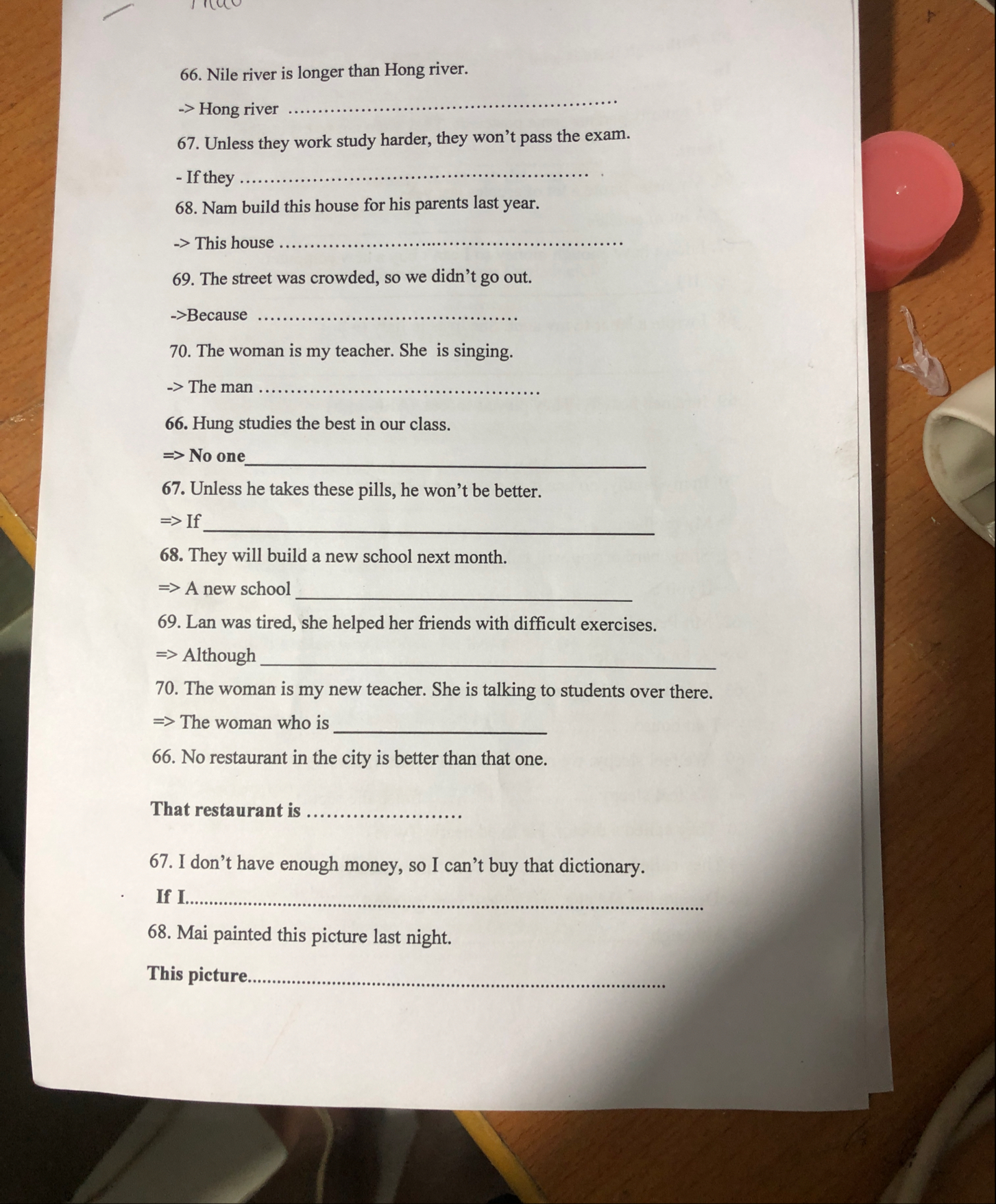 69. Although Lan was tired, she helped her friends with difficult exercises.