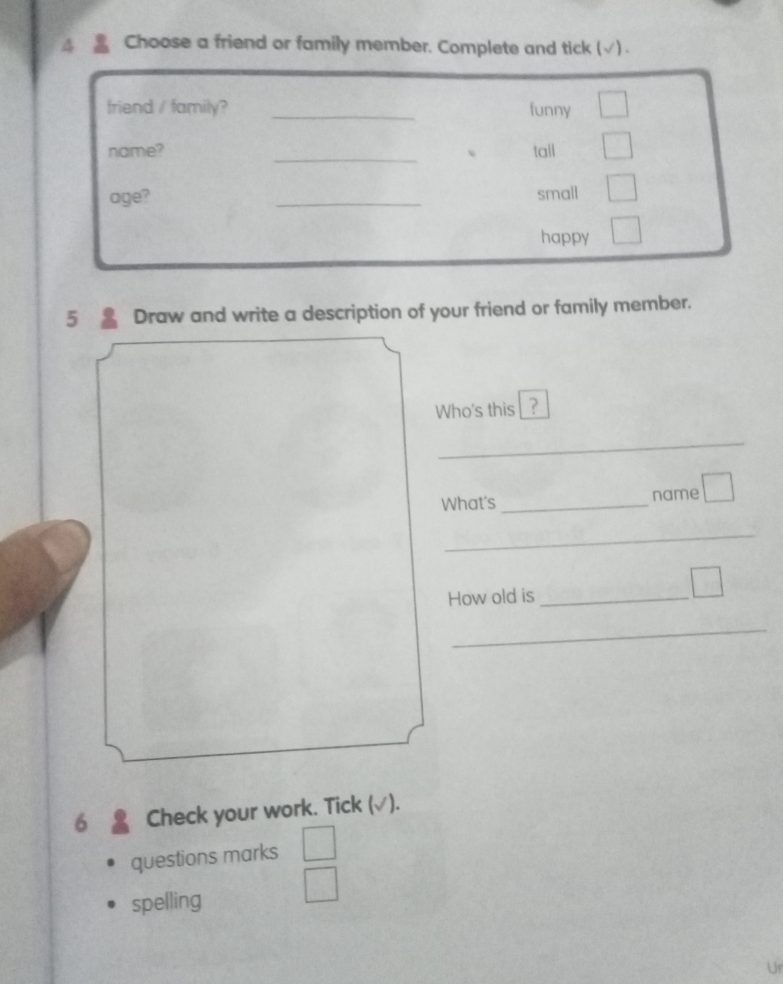 câu 5 là vẽ hình và miêu tả 1 thành viên gia đình theo khuôn mẫu ở dưới
