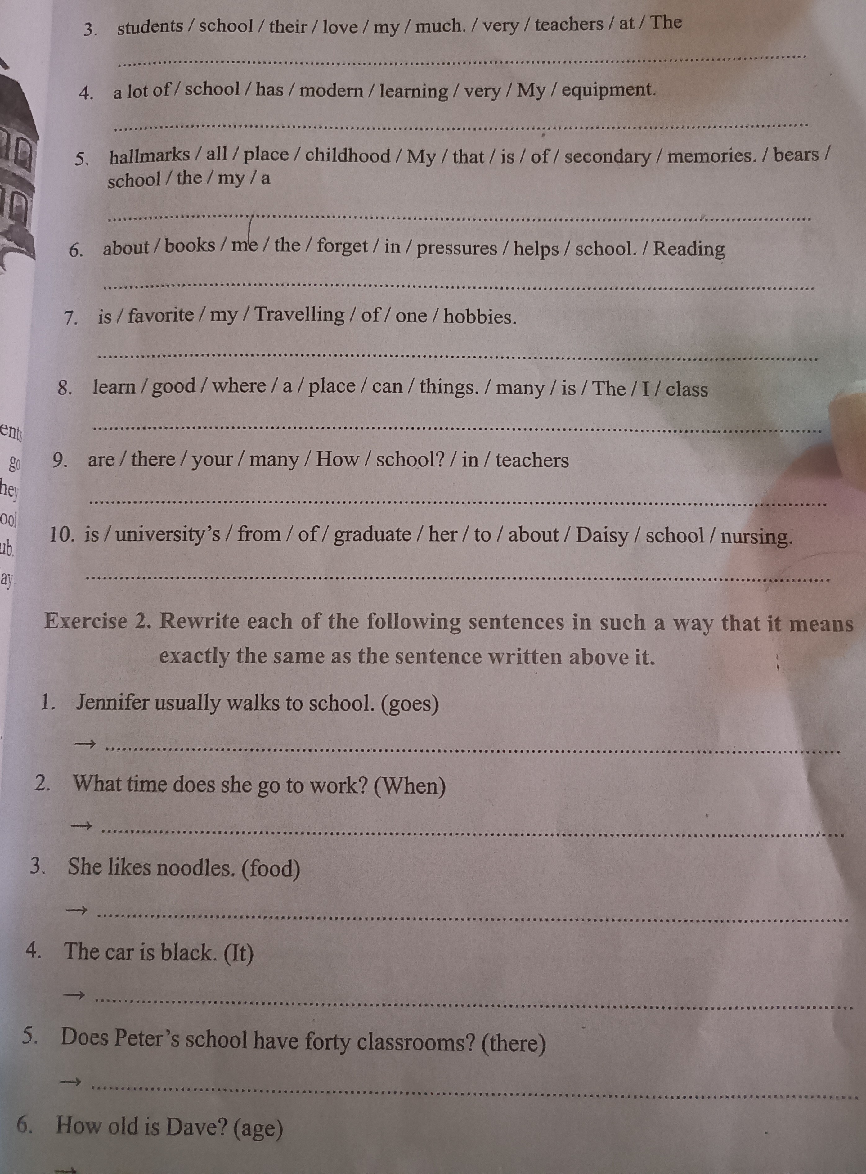 1. Jennifer usually goes to school on foot.