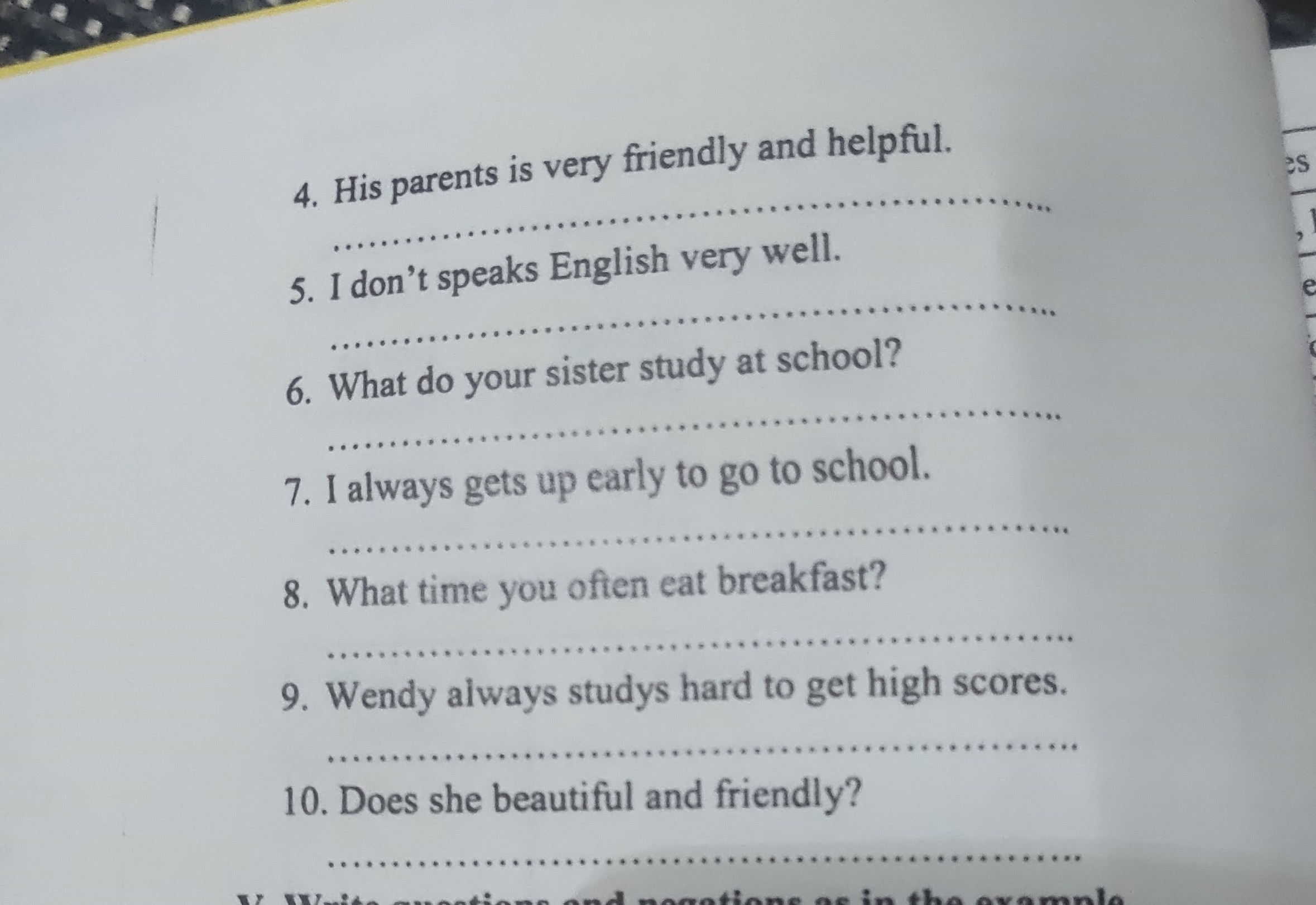 6. Wendy always studies hard to get high scores.