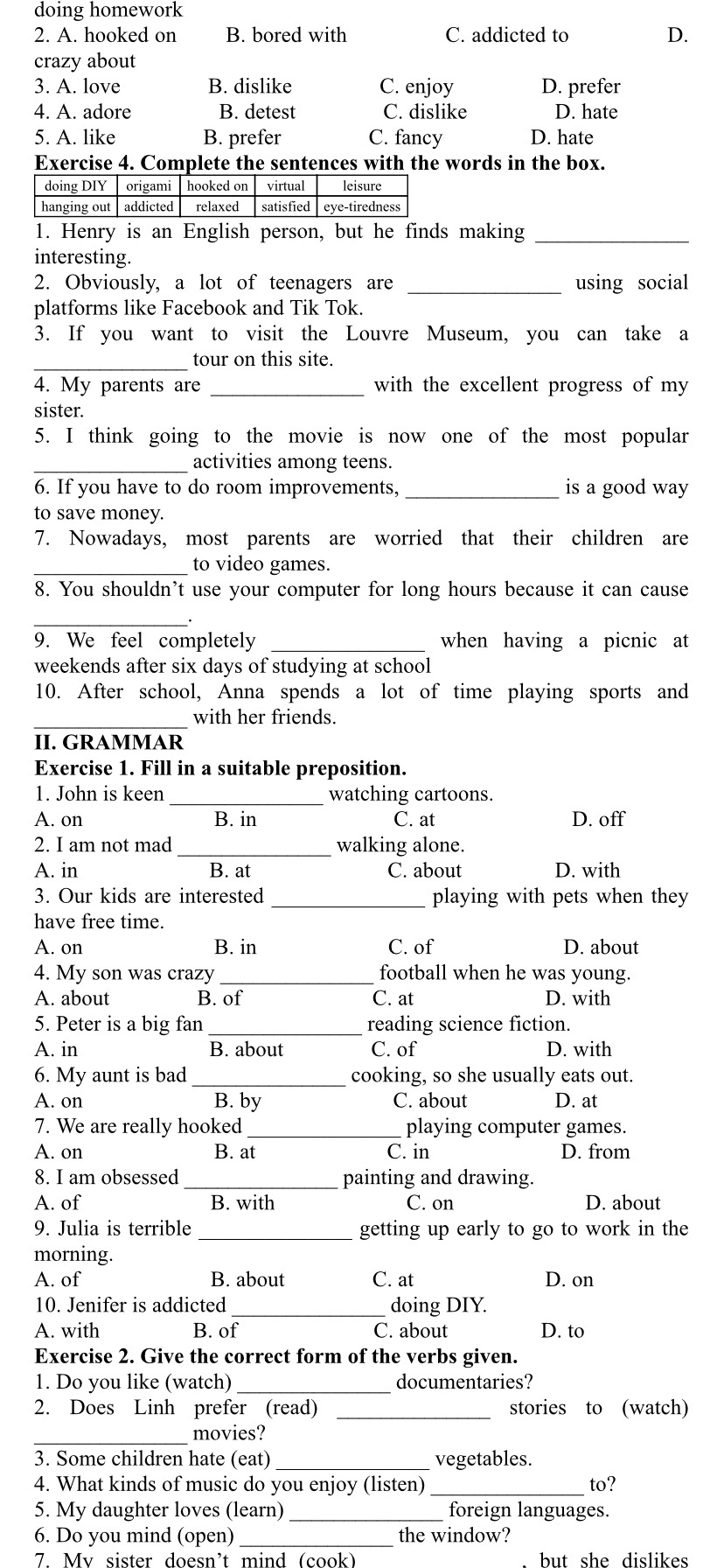 7. Nowadays, most parents are worried that their children are hooked on video games.