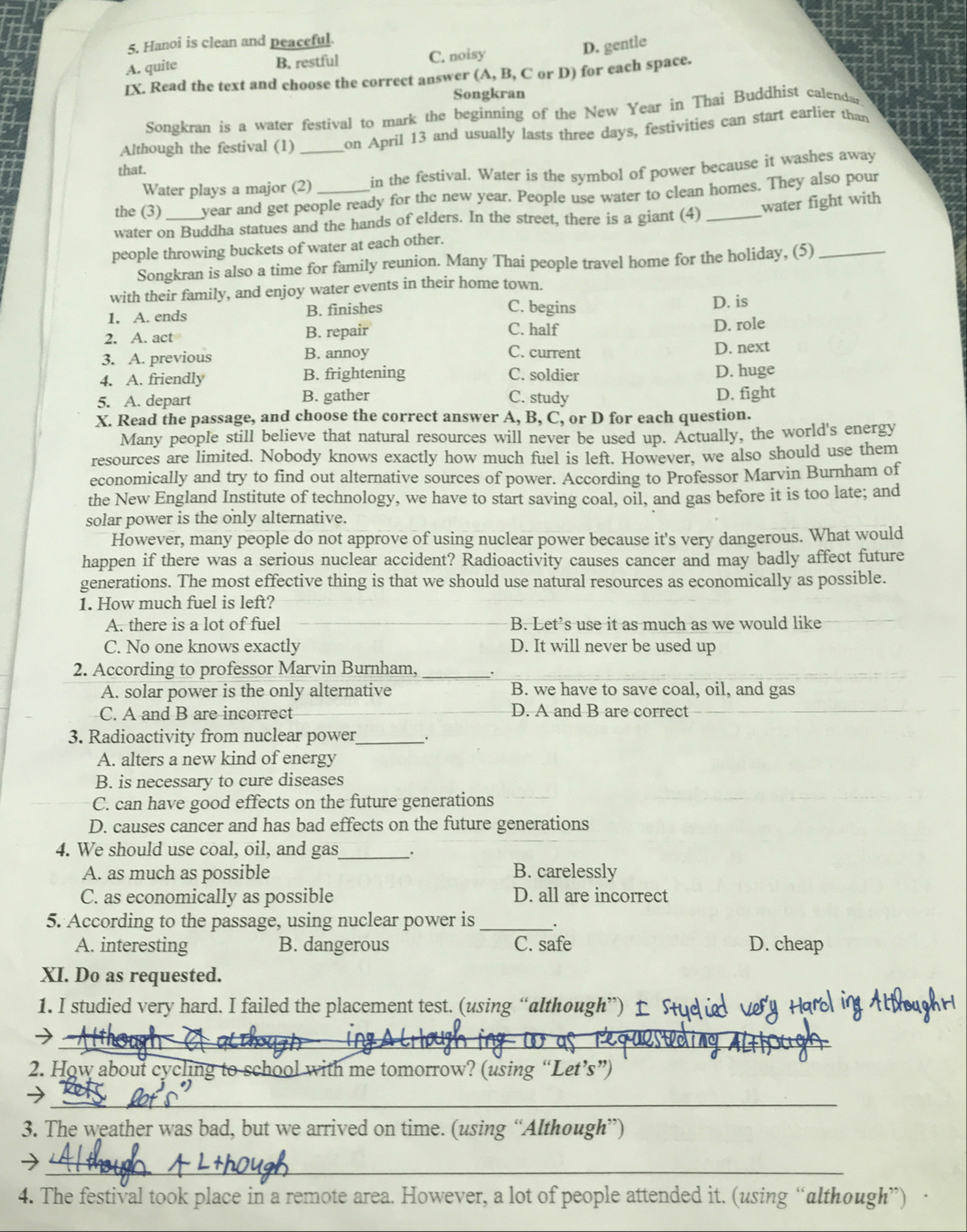 IX. Read the text and choose the correct answer (A, B, C or D) for each space.