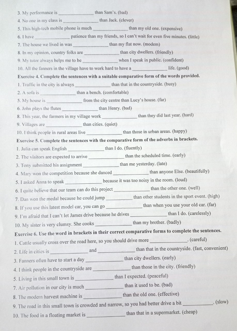 8. This year, the farmers in my village work harder than they did last year.