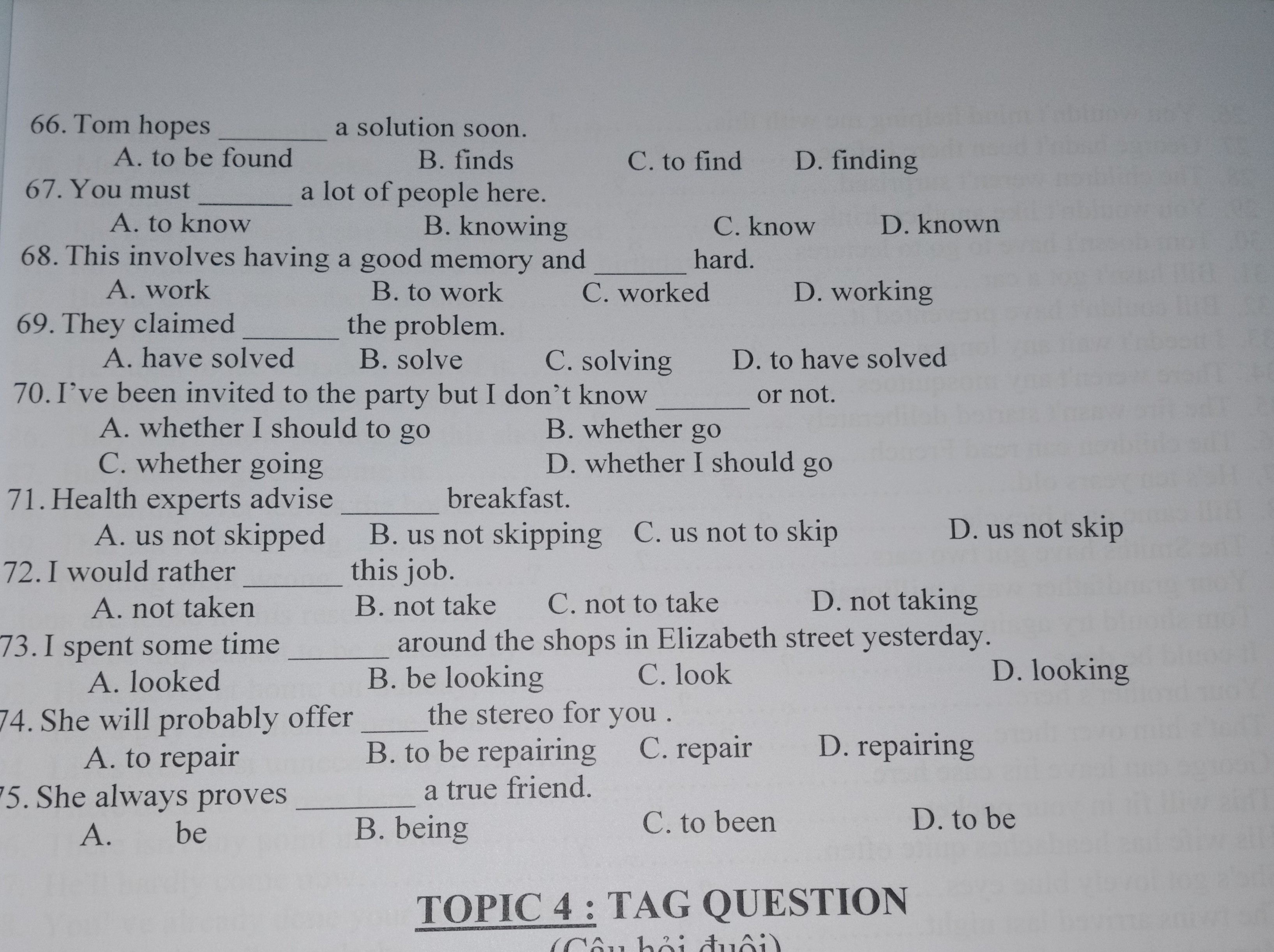 70. I've been invited to the party but I don't know whether I should go or not. (D)