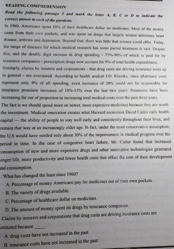 Thông tin: In 1960 American spent 10% of their healthcare dollar on medicines ...expenditures