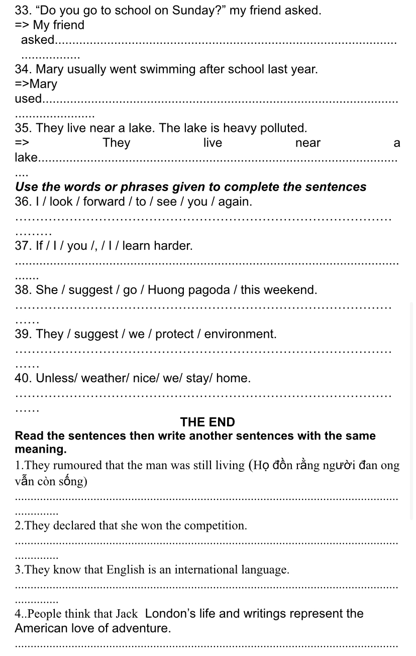 33. My friend asked if I went to school on Sunday.