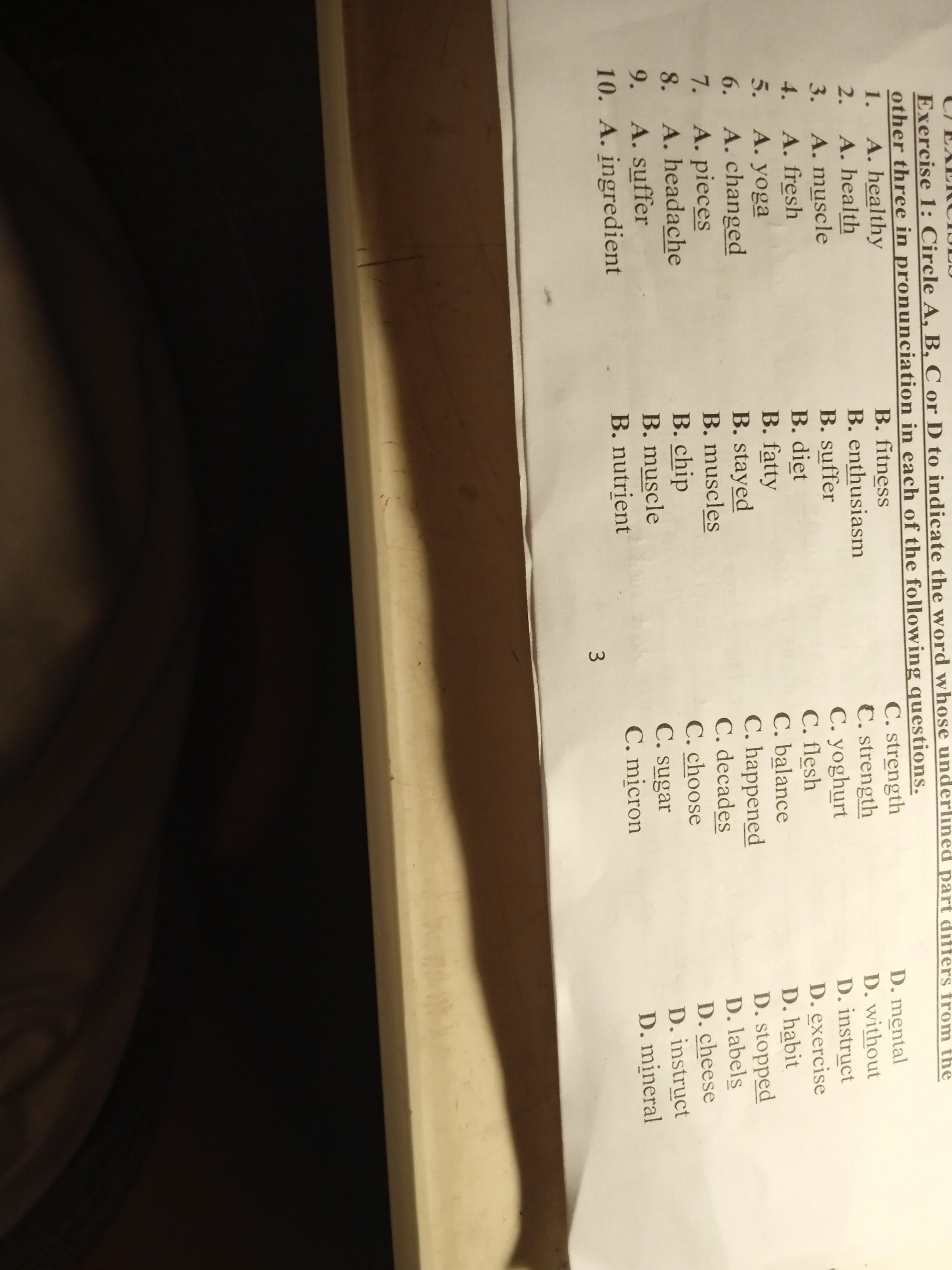 Fitness /ˈfɪtnəs/ khác với 3 đáp án còn lại phát âm là âm /e/