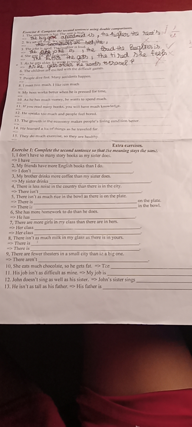Extra exercises. Exercise 1: Complete the second sentence so that the meaning stays the same.