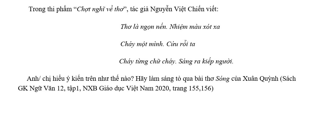 - Giới thiệu bài thơ Sóng của Xuân Quỳnh để chứng minh.