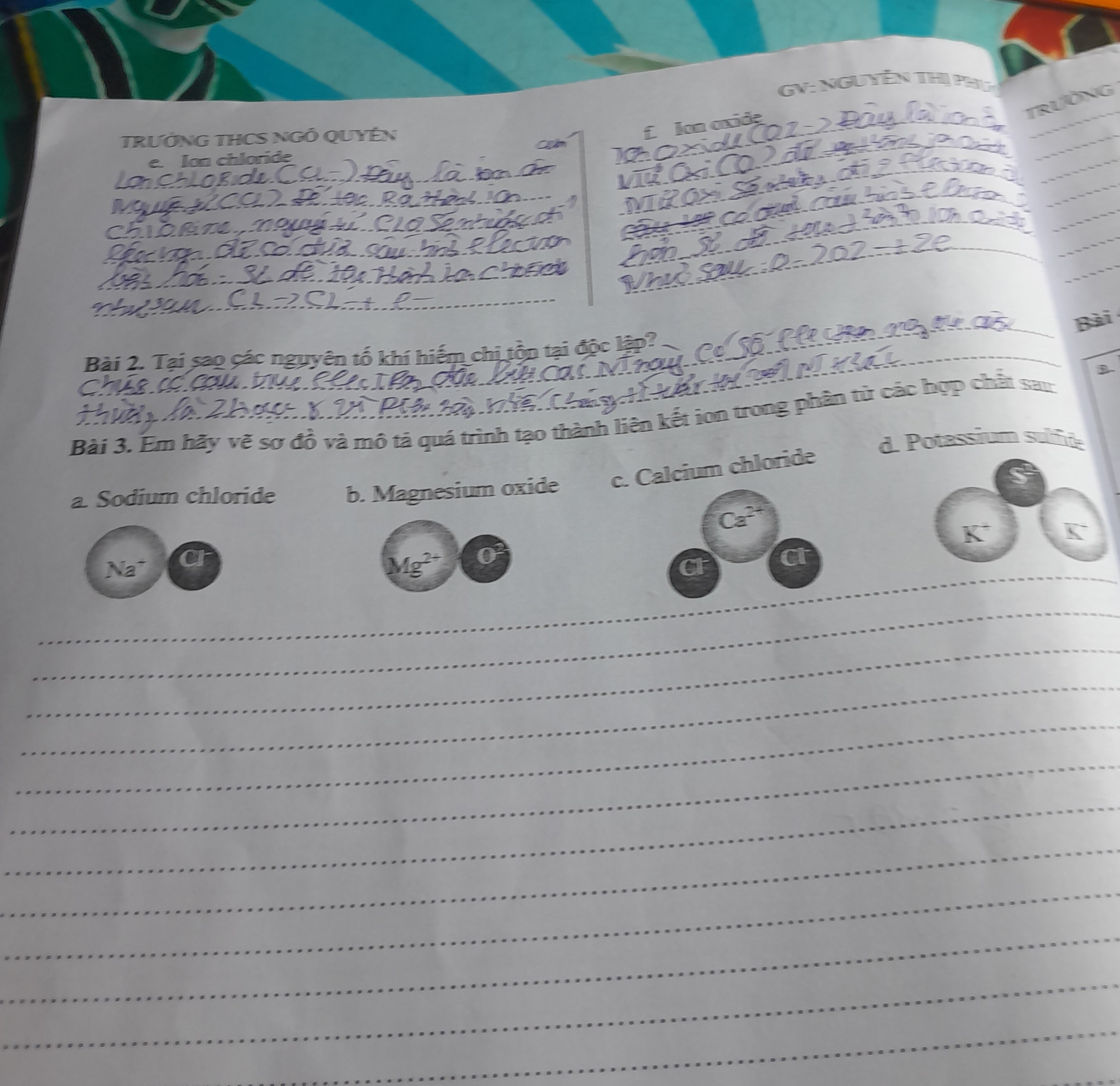 Lưu ý rằng đây chỉ là một mô tả tổng quát về quá trình liên kết ion trong các hợp chất này. Sự liên kết ion xảy ra khi có sự trao đổi electron giữa các nguyên tử để tạo ra các ion trái dấu, và lực tương tác điện từ giữa các ion này làm cho chúng liên kết với nhau.