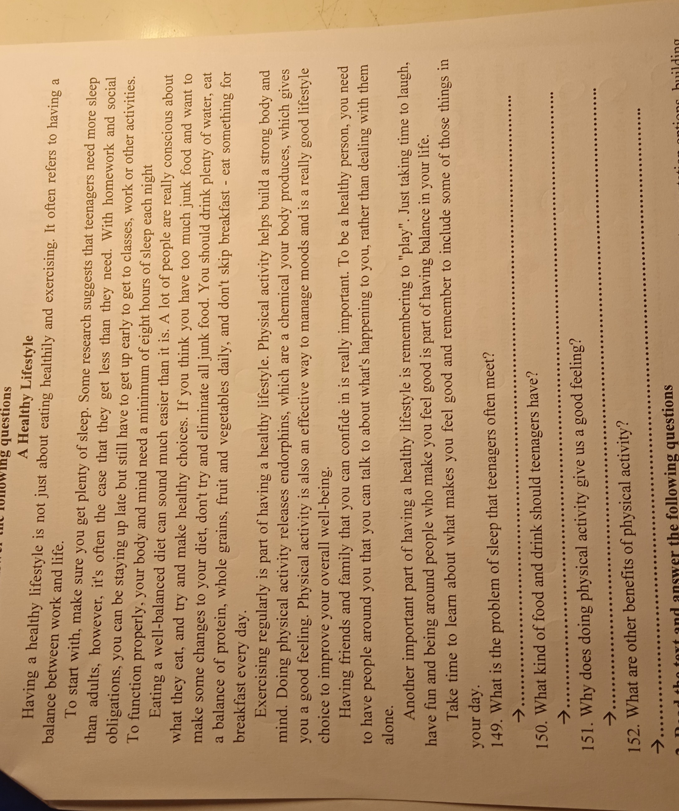 149. The problem of sleep that teenagers often meet is that they often get less sleep than they need due to homework, social obligations, and early morning activities.