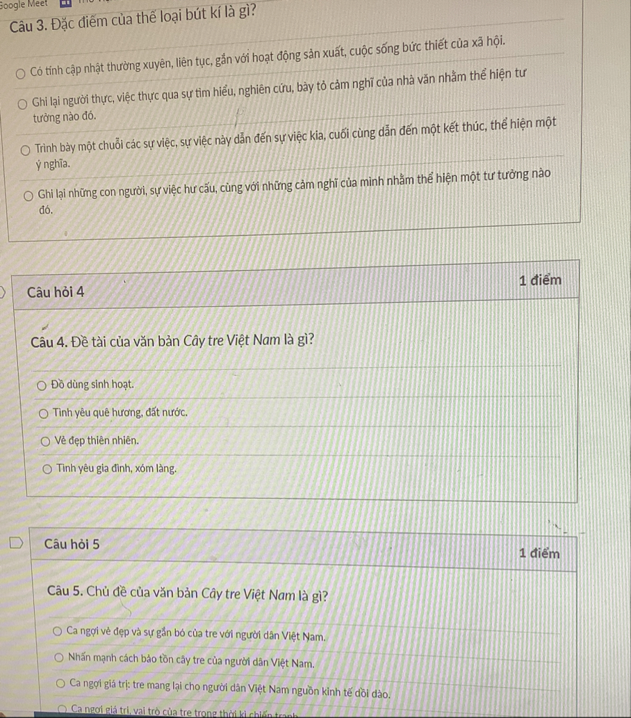 Câu 3: Ghi lại người thực, việc thực qua sự tìm hiểu, nghiên cứu, bày tỏ cảm nghĩ của nhà văn nhằm thể hiện tư tưởng nào đó.