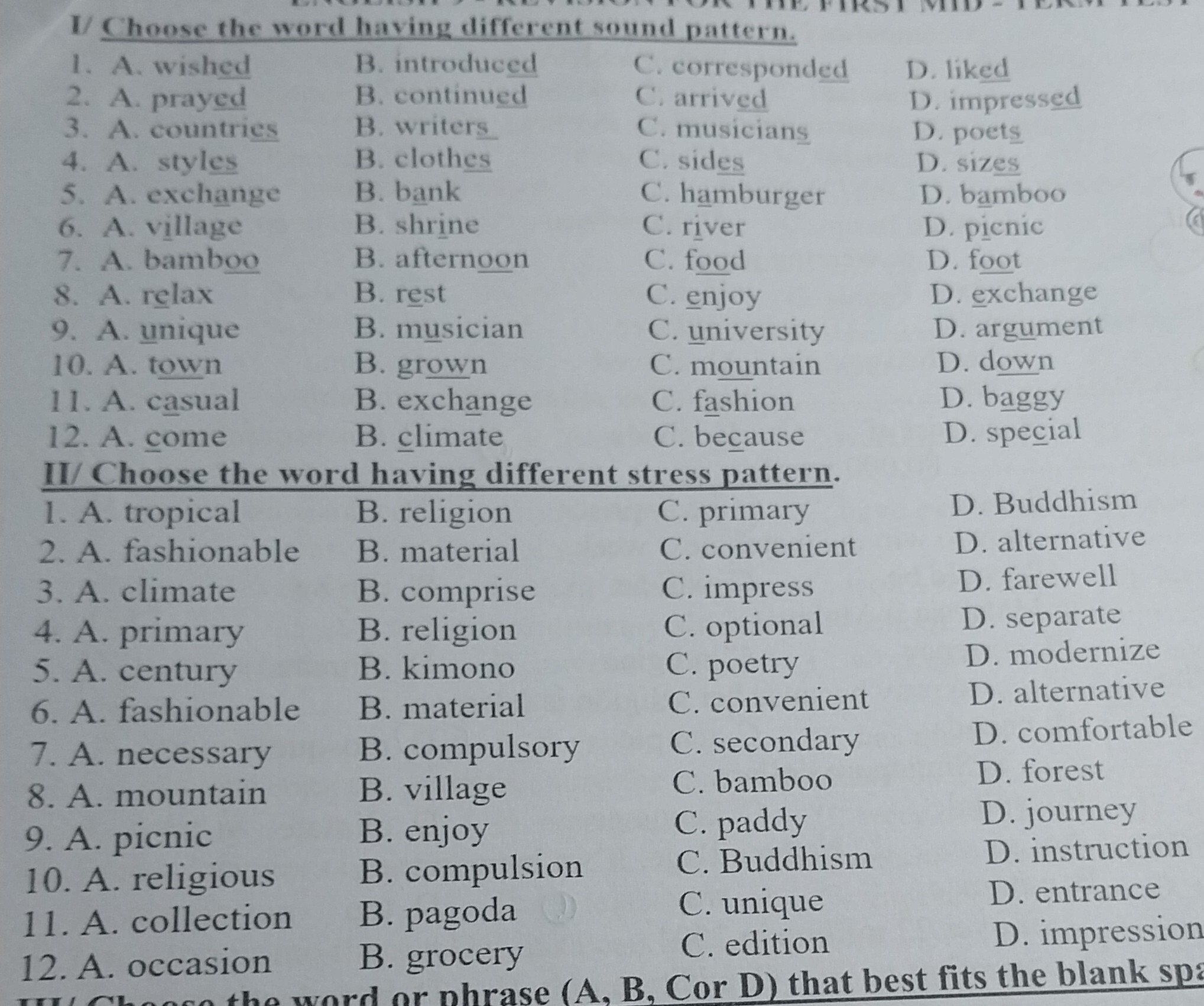 I 1. C 2. D 3. D 4. D 5. A 6. B 7. D 8. B 9. D 10. B 11. B 12. D