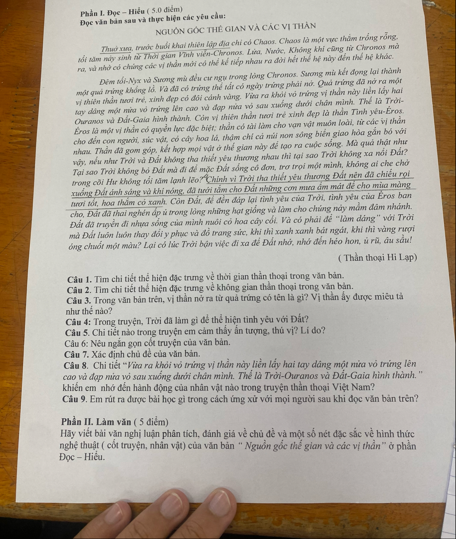 9. Bài học em rút ra là cần phải biết hi sinh cái riêng vì cái chung. Điều này được thể hiện rõ qua sự chia li của Trời và Đất. Chúng ta cũng cần học hỏi, biết vì cộng đồng đừng để con sâu làm rầu nồi canh.