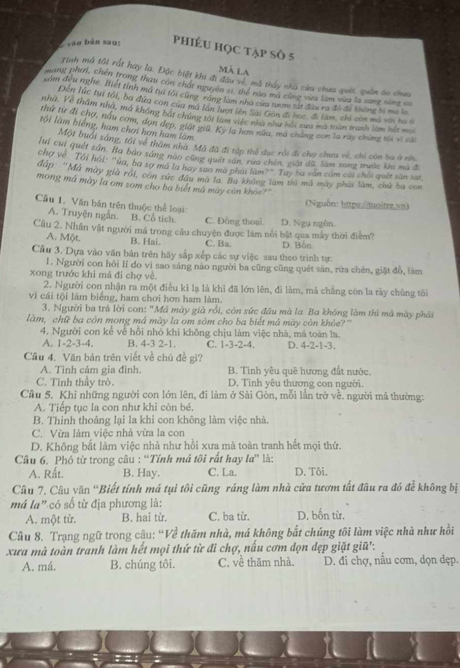 D. Không bắt làm việc nhà như hồi xưa mà toàn tranh hết mọi thứ.