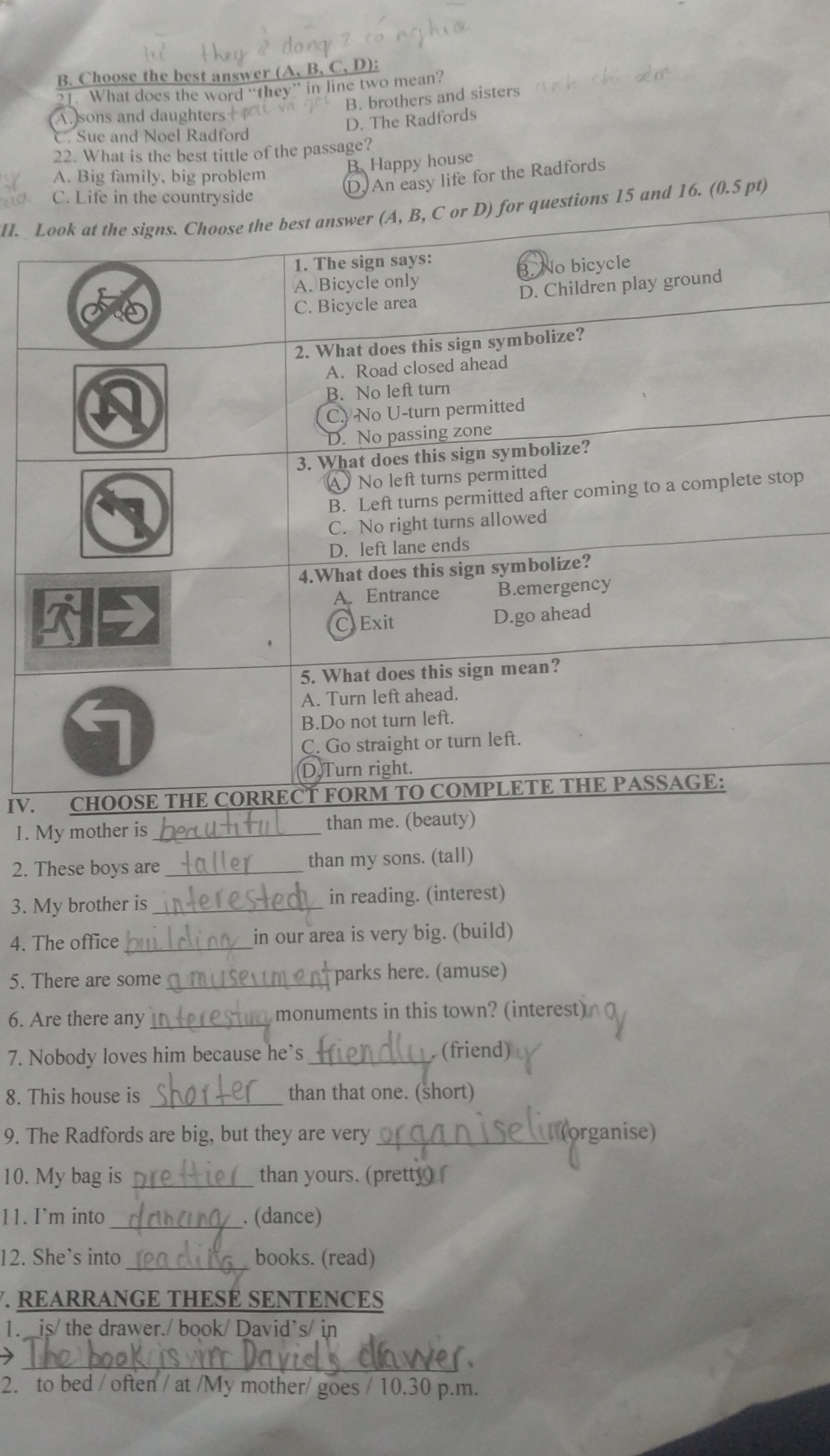 4. Đối với phần "CHOOSE THE CORRECT FORM TO COMPLETE THE PASSAGE",