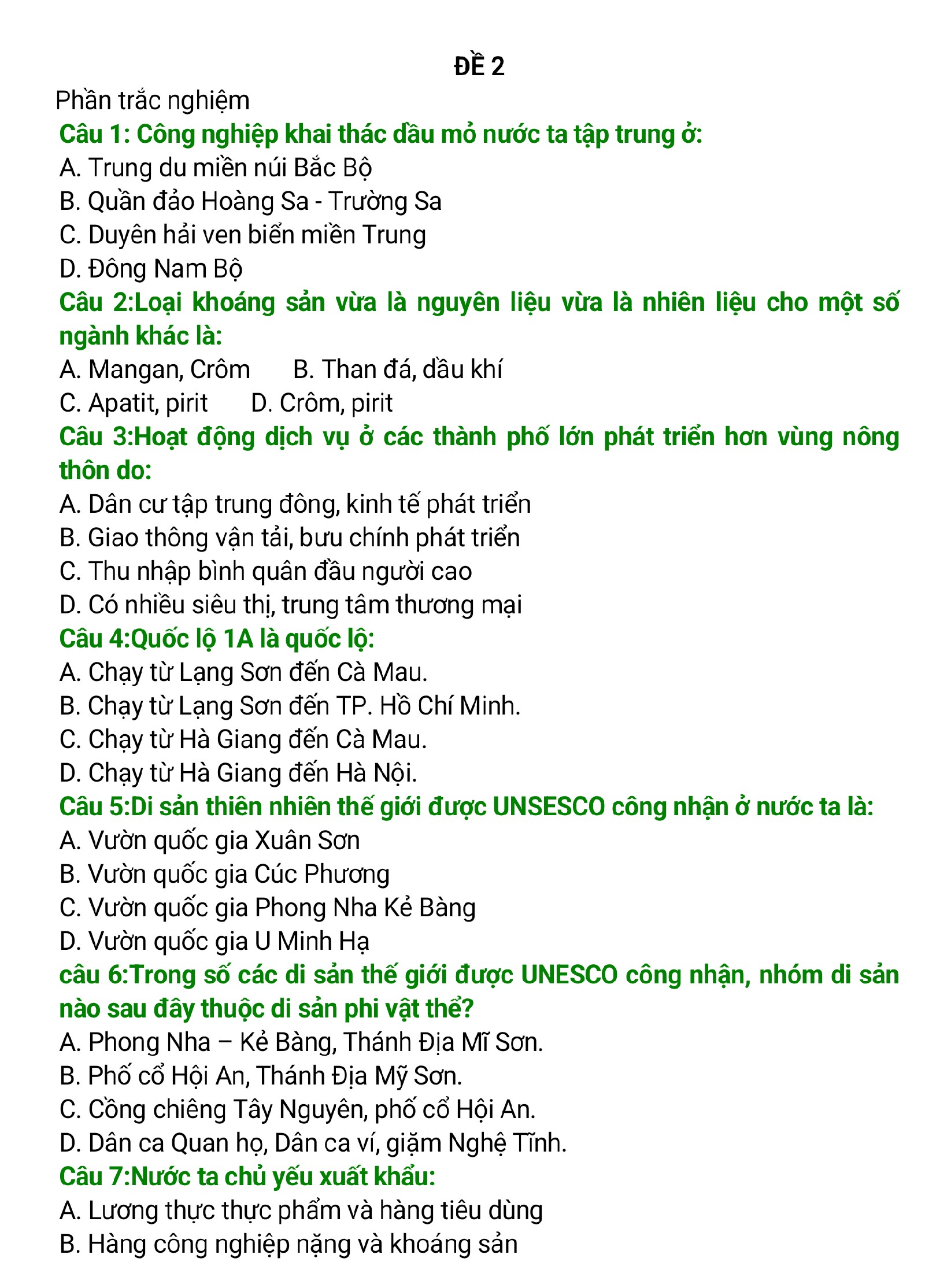 Câu 1: Công nghiệp khai thác dầu mỏ nước ta tập trung ở Đông Nam Bộ.