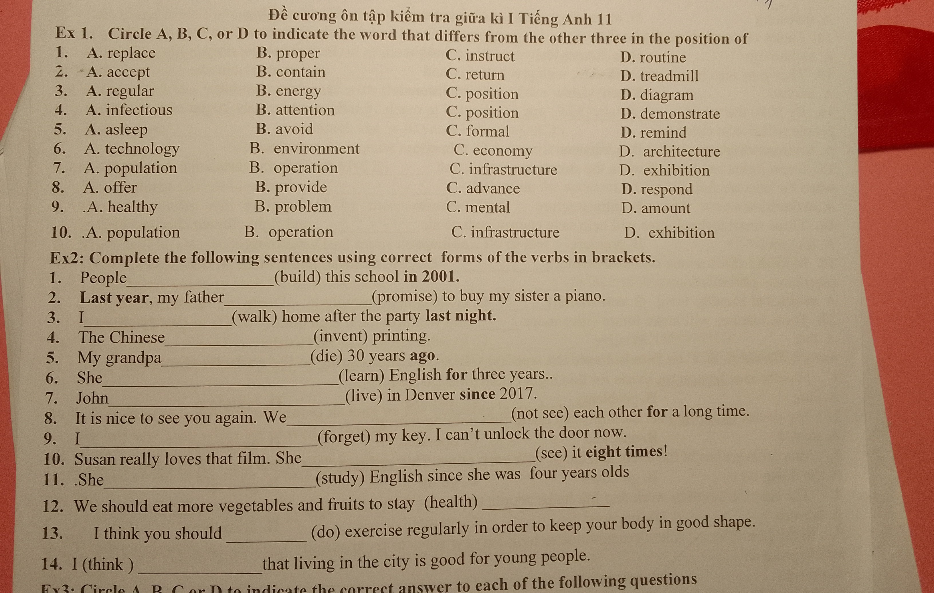 2. Last year, my father promised (promise) to buy my sister a piano.