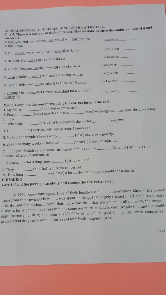 7. Having a balancing diet is very important for a long and healthy life. -> Correct: Having a balanced diet is very important for a long and healthy life.