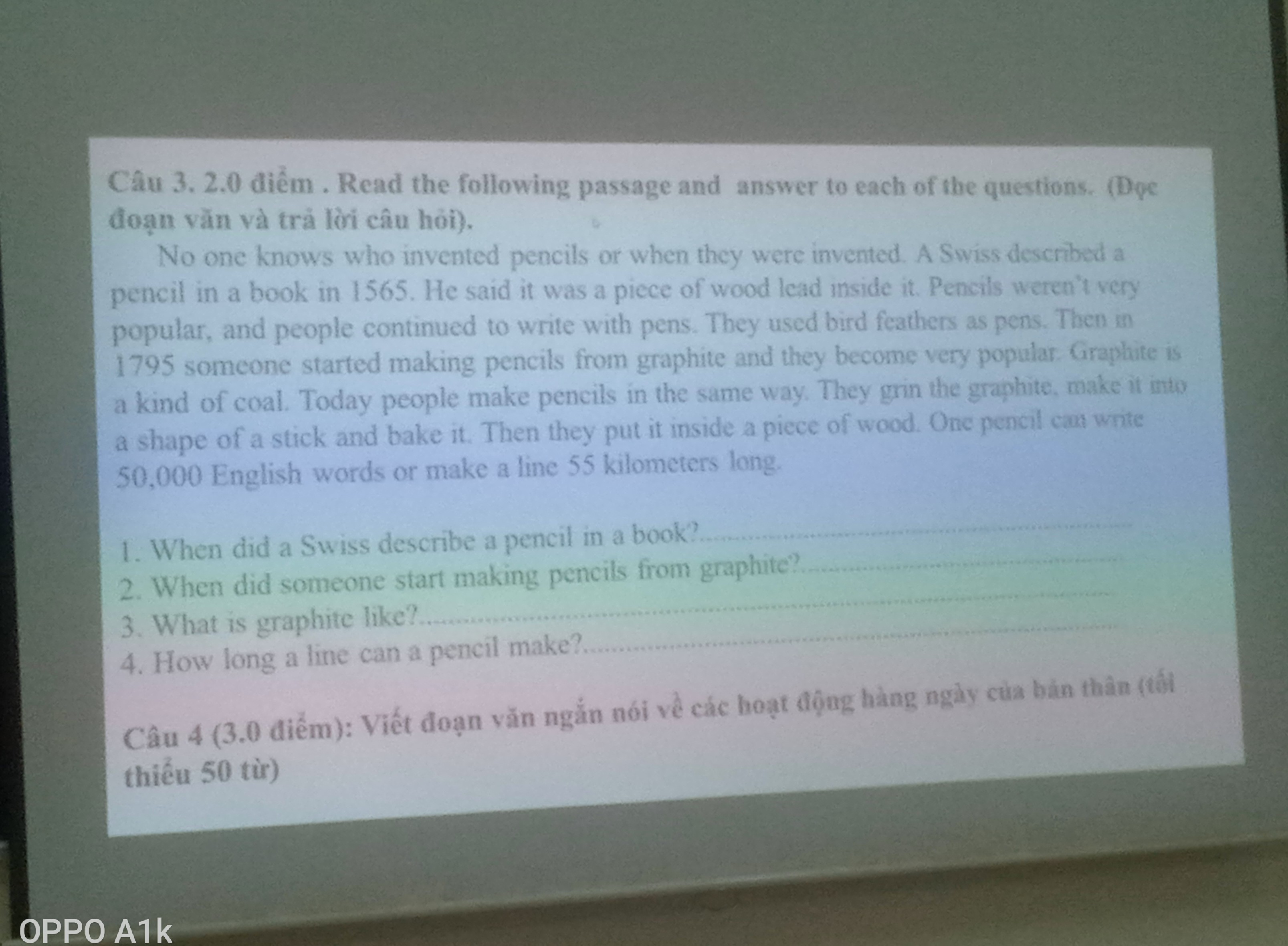 2. Ai đó bắt đầu sản xuất bút chì từ graphite vào năm 1795.