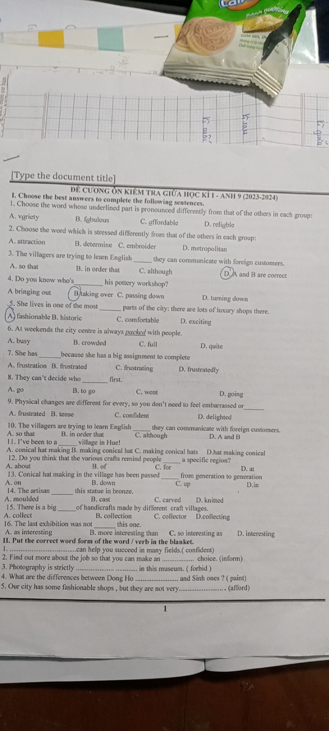 11. A. conical hat making (nghĩa là "làng làm nón lá")
