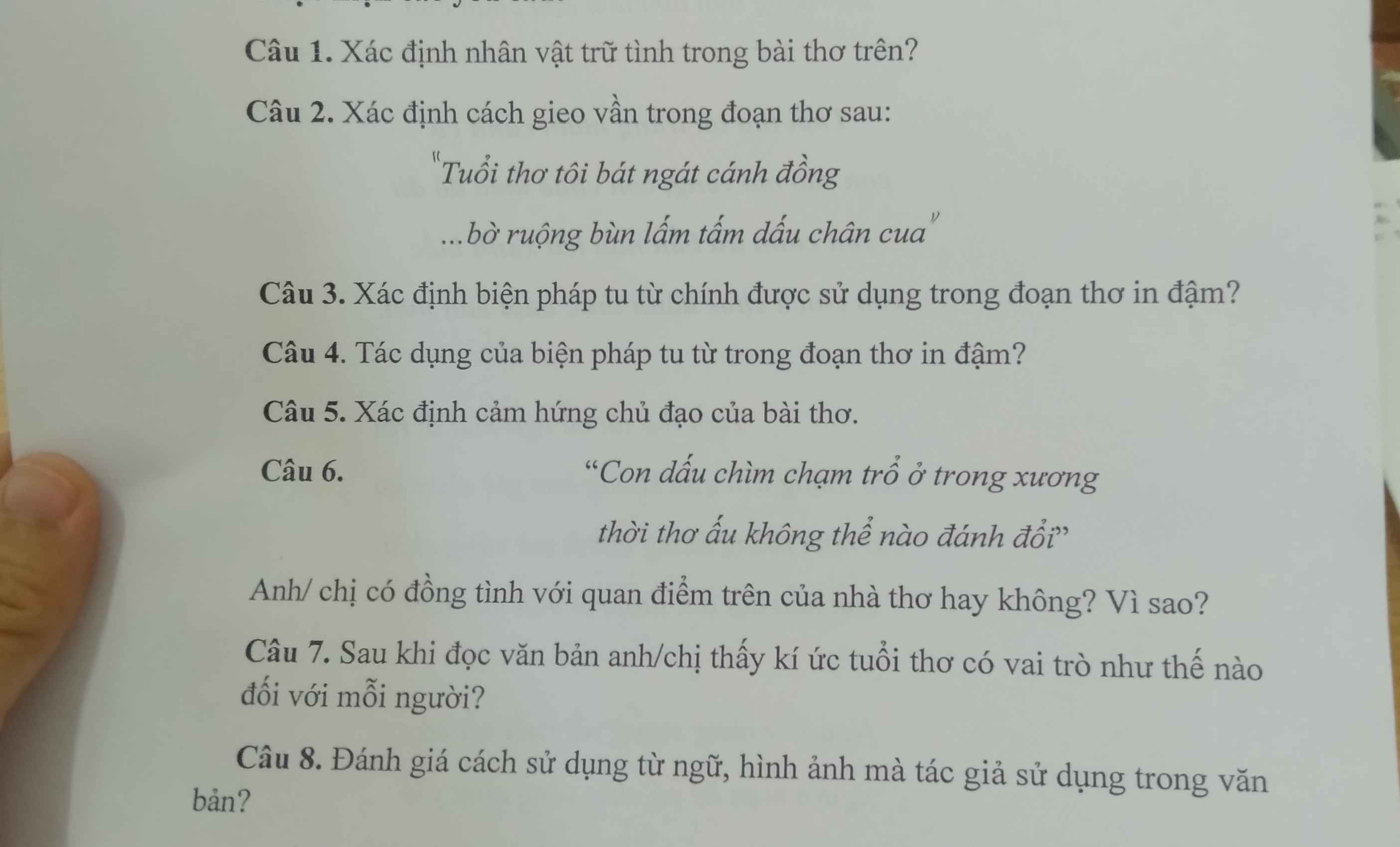 5/Cảm hứng chủ đạo của bài thơ là những kỷ niệm tuổi thơ của tác giả. Từ đó là tình yêu thương quê hương mình