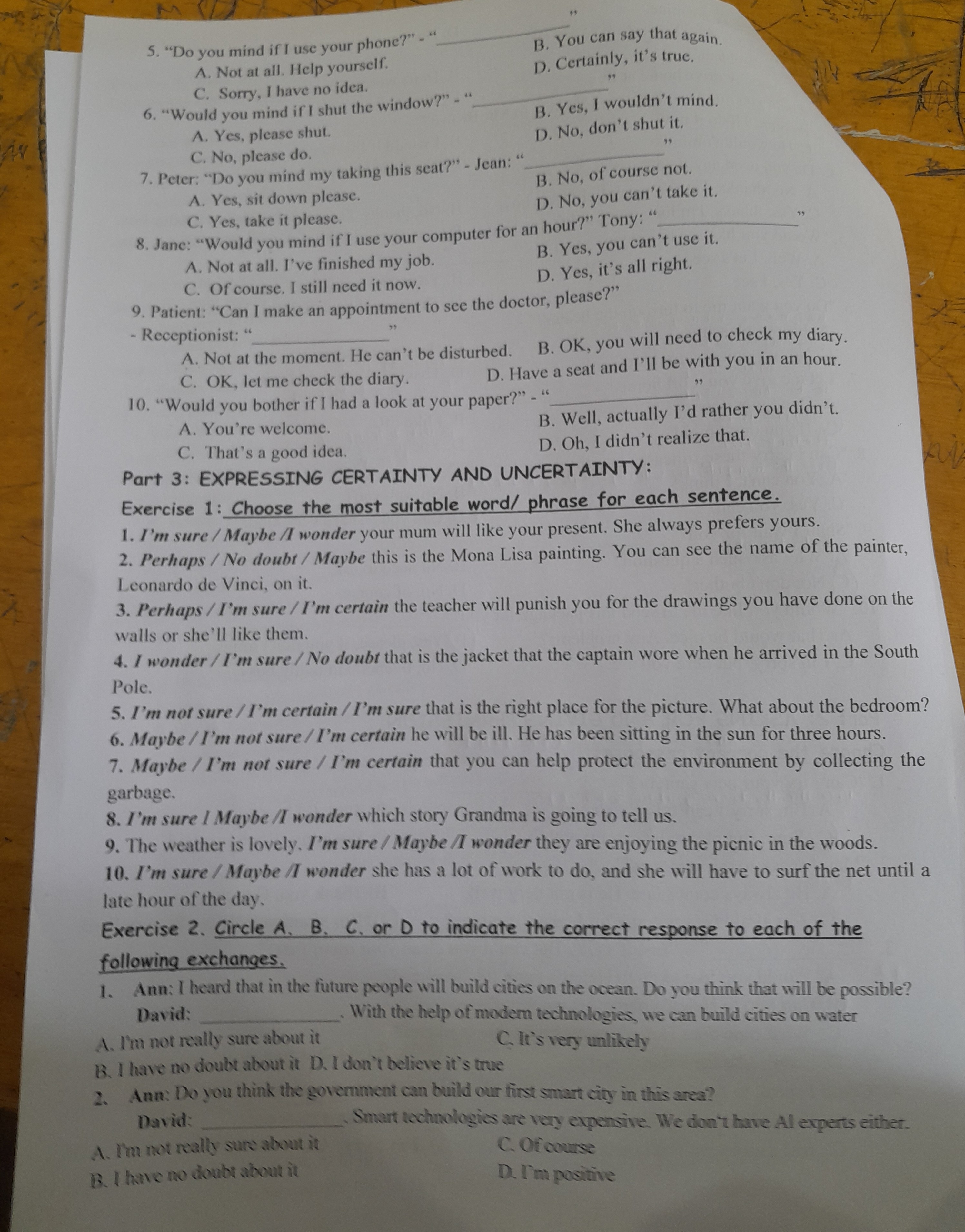 Part 3: EXPRESSING CERTAINTY AND UNCERTAINTY: