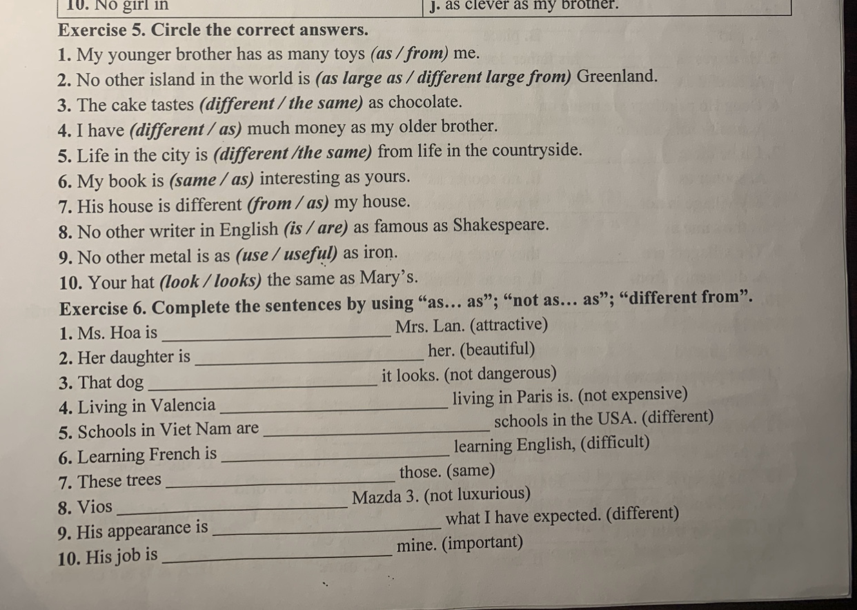1. Ms. Hoa is as attractive as Mrs. Lan