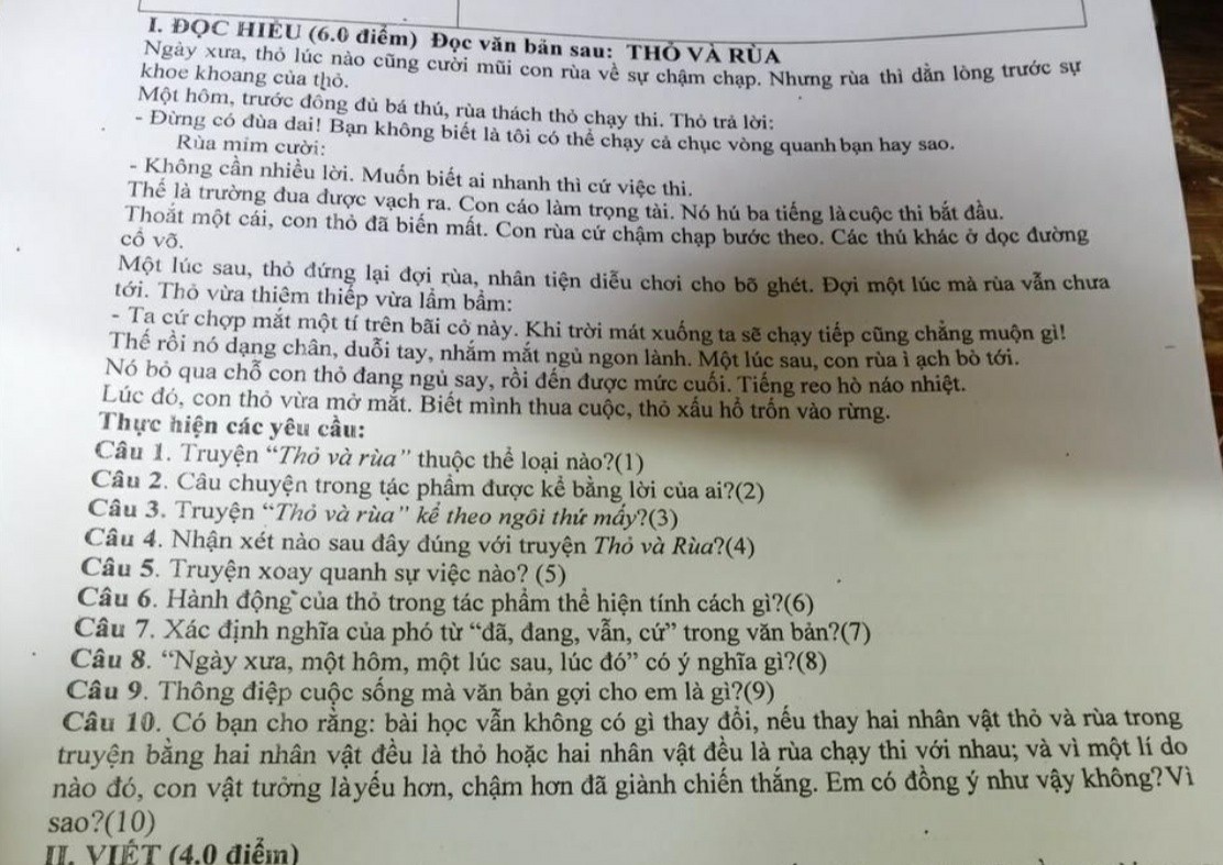 Câu 1: Truyện "Thỏ và rùa" thuộc thể loại truyện ngụ ngôn.