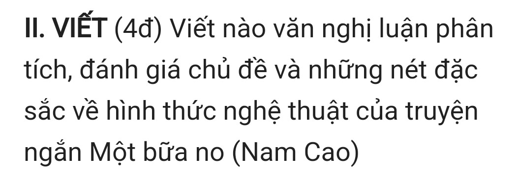 "Một bữa no" là một trong những tác phẩm văn học nổi tiếng của nhà văn Nam Cao kể về cuộc đời của một bà lão nghèo khổ. Đối với nhiều người, có lẽ câu chuyện sâu xa được truyền tải còn thấm thía hơn nhiều truyện khác của Nam Cao.