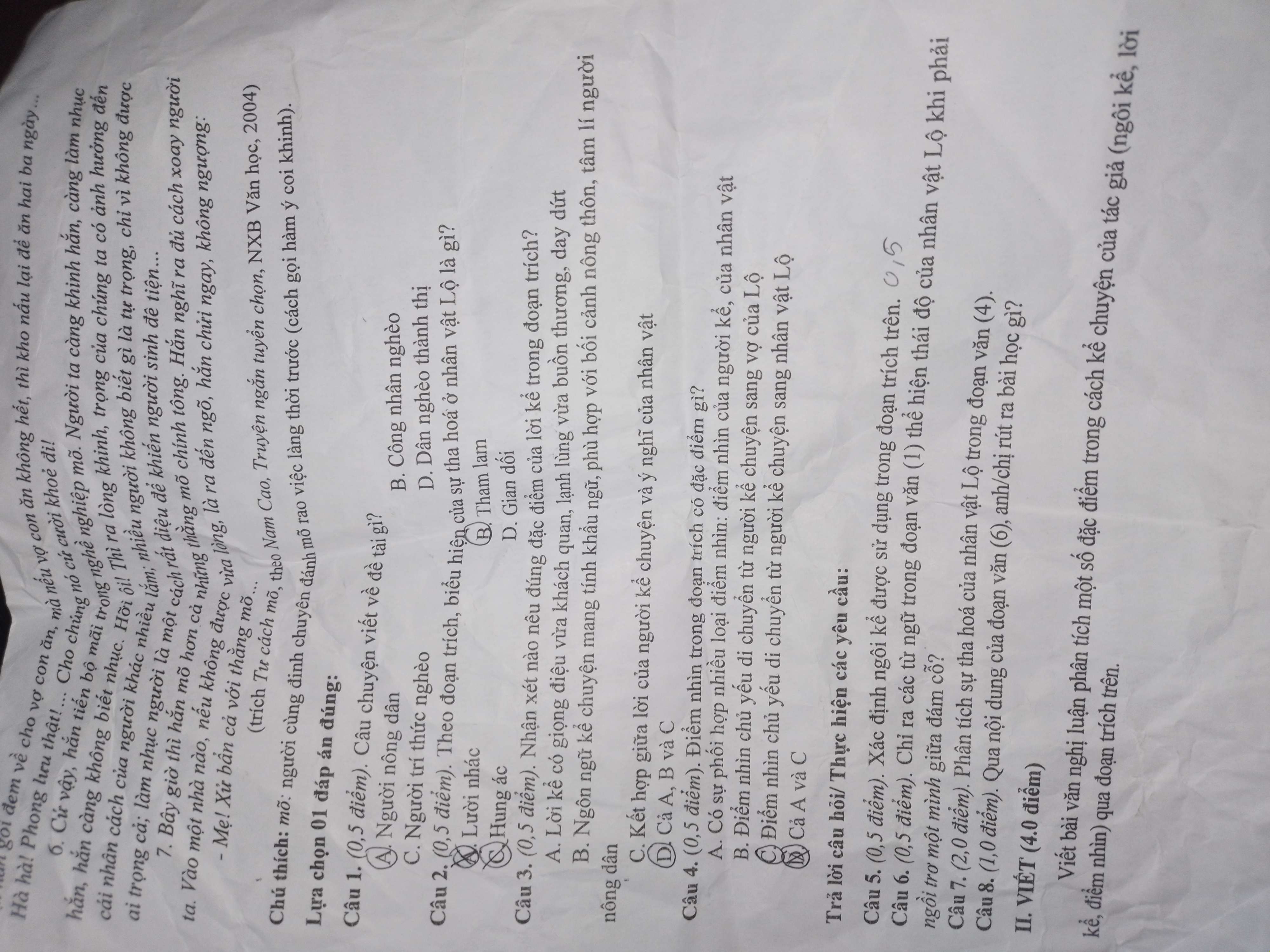 Câu 7: Phân tích sự tha hoá của nhân vật Lộ trong đoạn văn (4).
