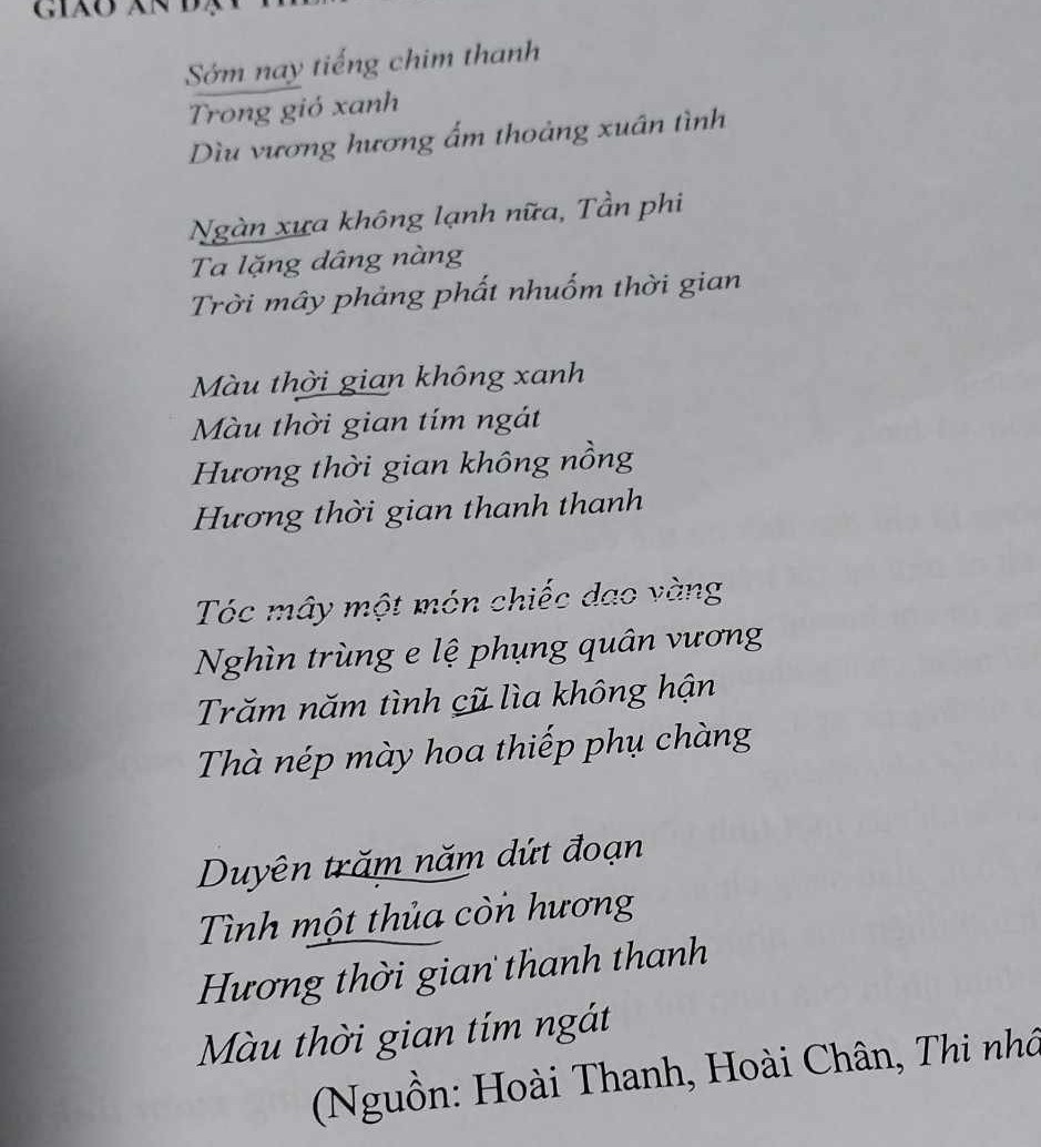 Đó cũng là kết luận của bài thơ “Màu thời gian”. Đoạn chót trở về với thể thơ 5 chữ như đoạn bên trên nói về những sắc thái nhẹ nhàng của thời gian: