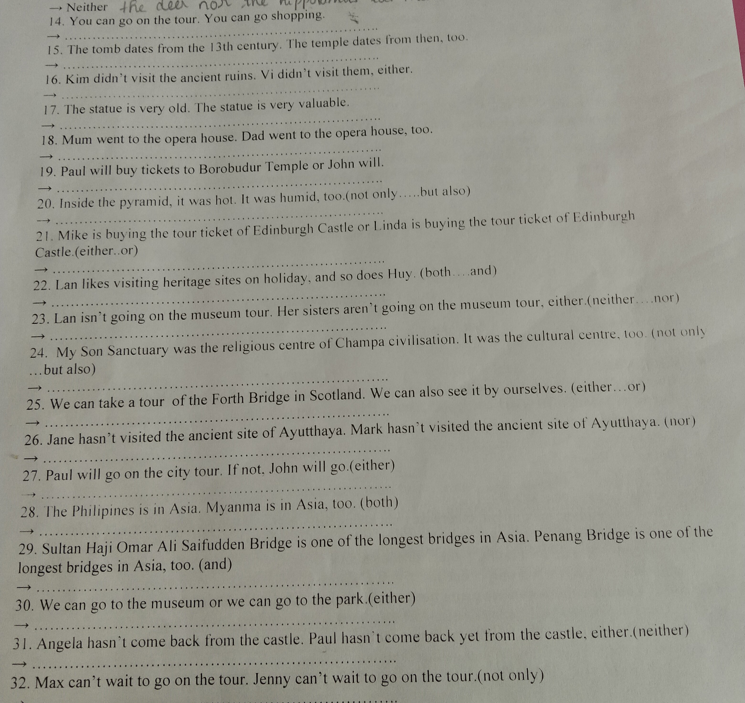 16. Neither Kim nor Vi visited the ancient ruins.