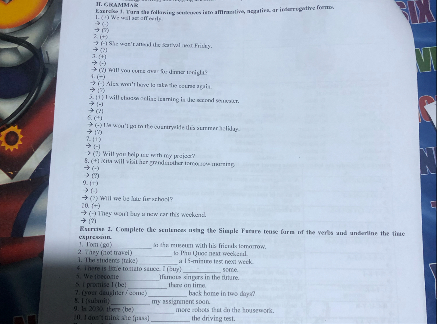 8. (+) Rita will visit her grandmother tomorrow morning.