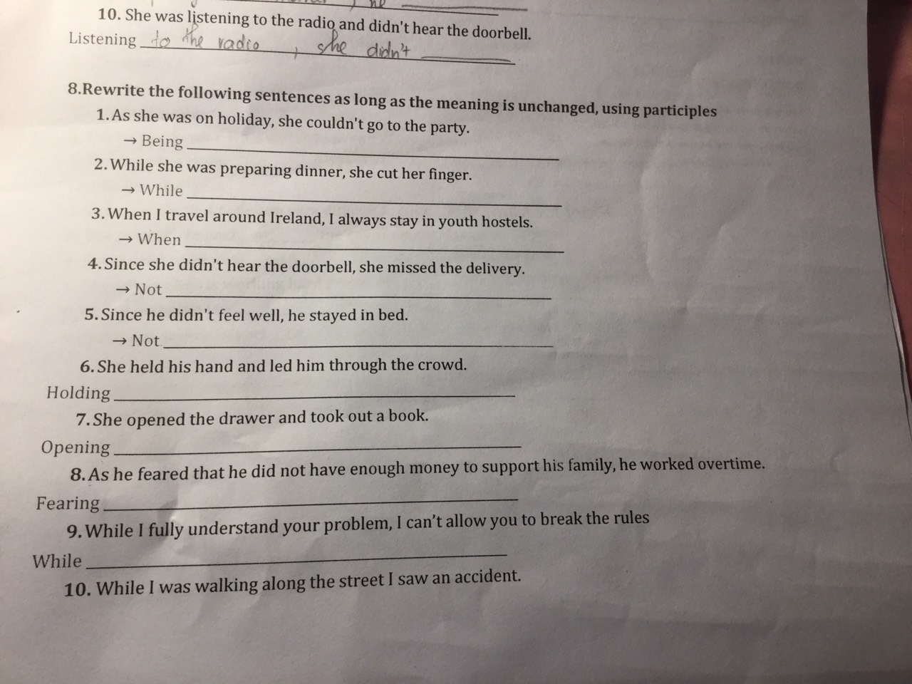 8.Rewrite the following sentences as long as the meaning is unchanged, using participles
