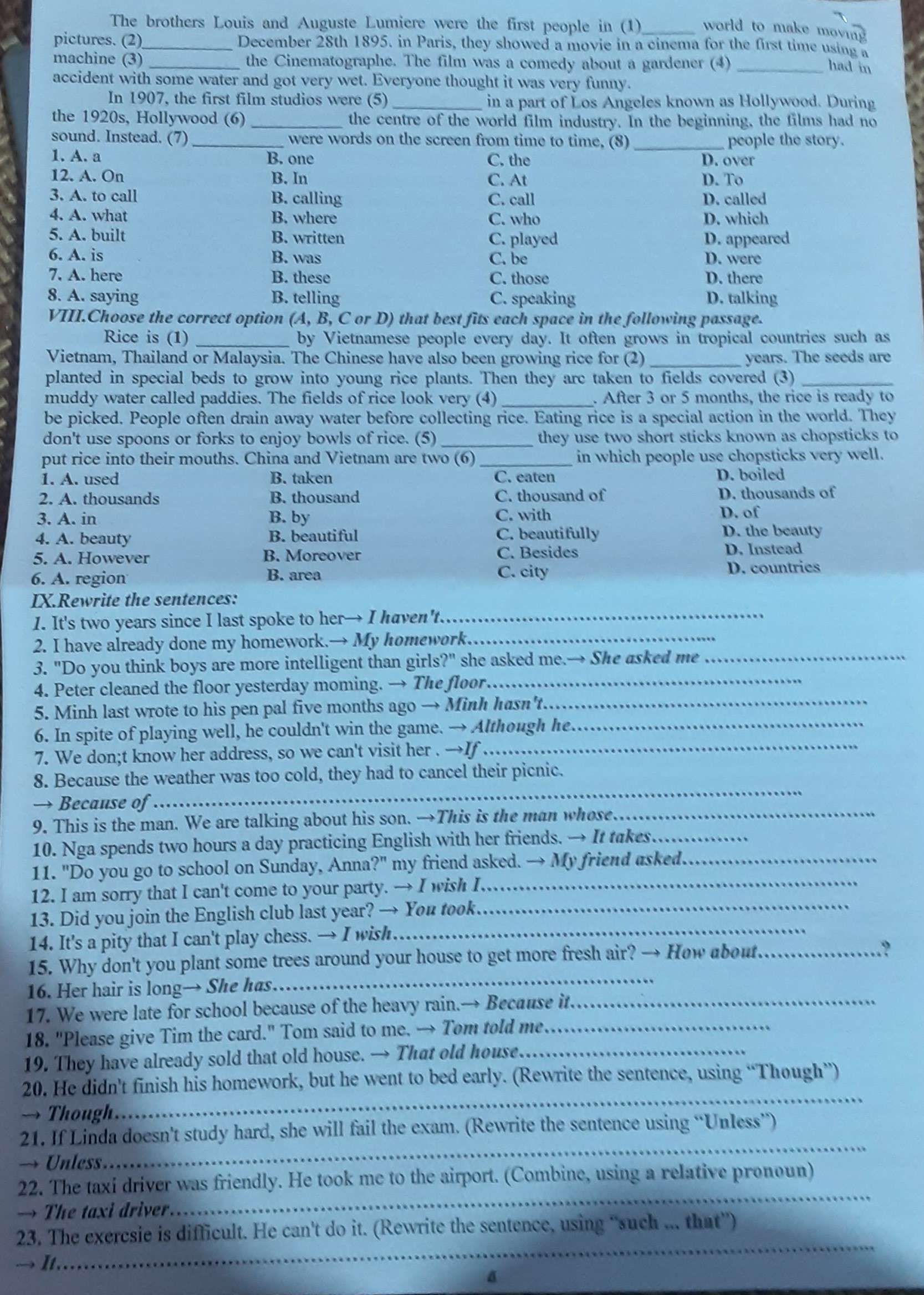 5. Minh last wrote to his pen pal five months ago. → Minh hasn't written to his pen pal for five months.