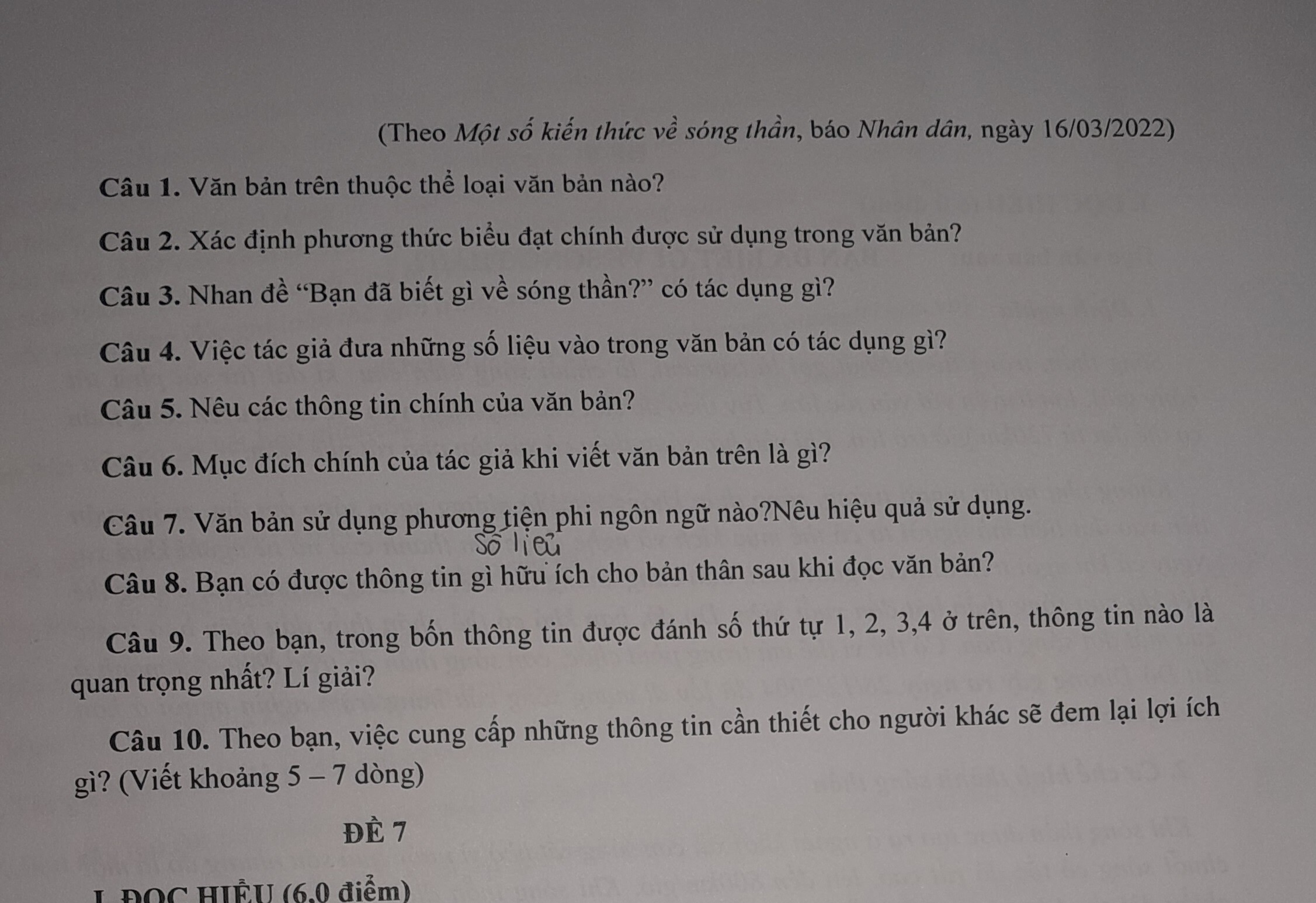 Câu 5: Các thông tin chính của văn bản không được cung cấp trong đoạn văn trích dẫn.