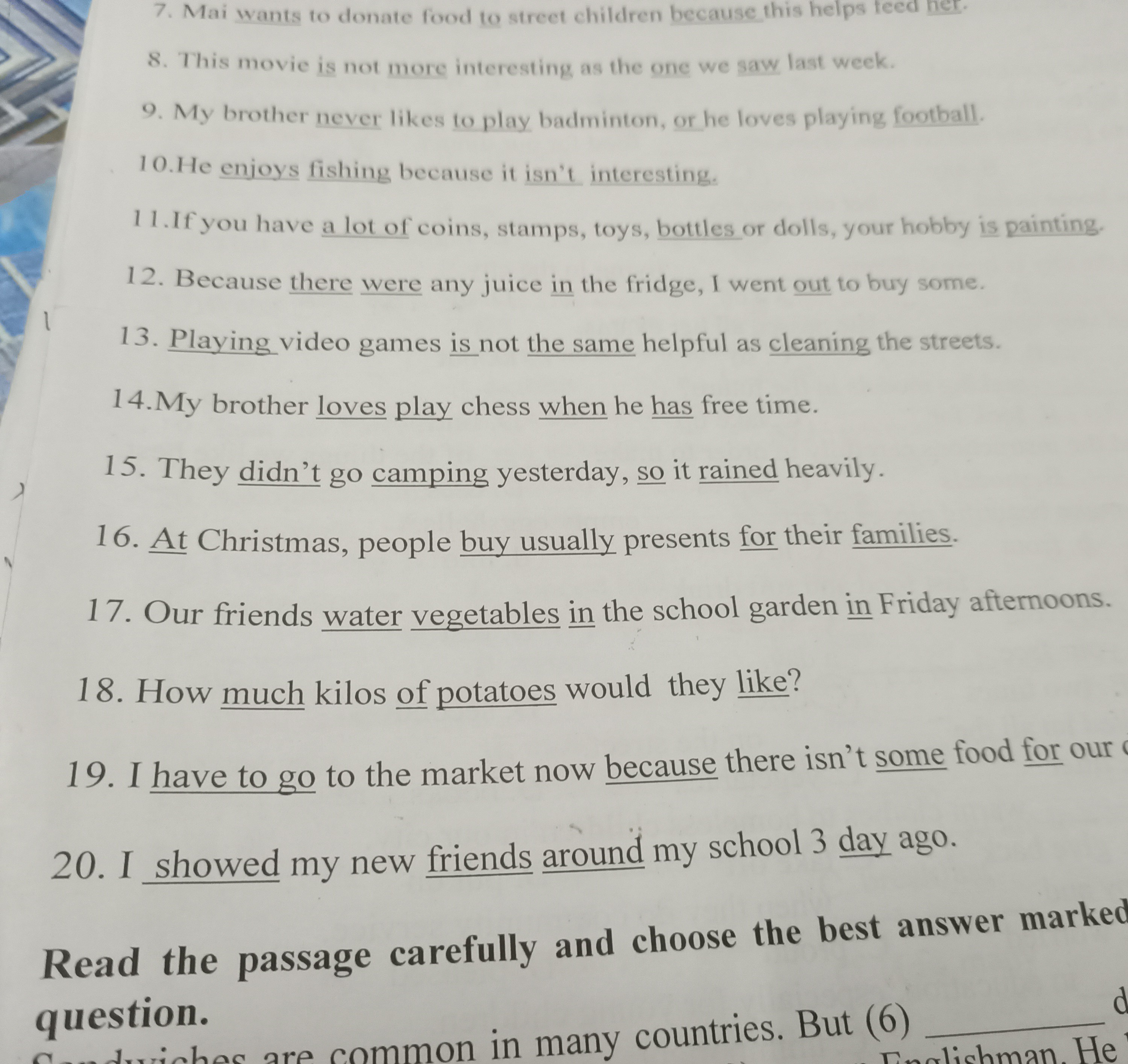 7. her → them ( street children là chủ thể của hành động được giúp đỡ)