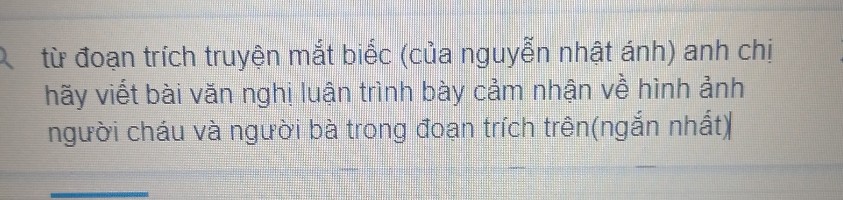 Người bà trong đoạn truyện "Mắt Biếc" của nhà văn Nguyễn Nhật Ánh là một nhân vật đầy đặn và có ảnh hưởng đáng kể đến cuộc sống của nhân vật chính là Ngạn. Nhân vật người bà được xây dựng một cách tinh tế, để lại ấn tượng sâu sắc cho độc giả về tình yêu thương và sự hi sinh vô điều kiện.