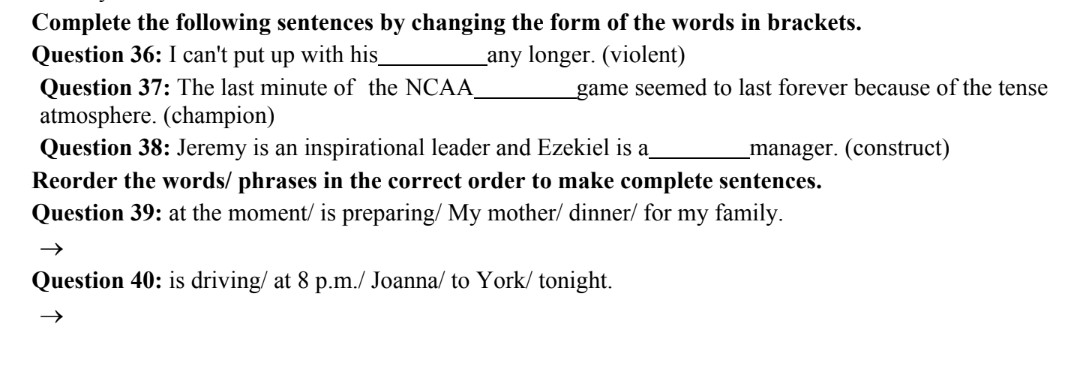 Question 39: At the moment, my mother is preparing dinner for my family.