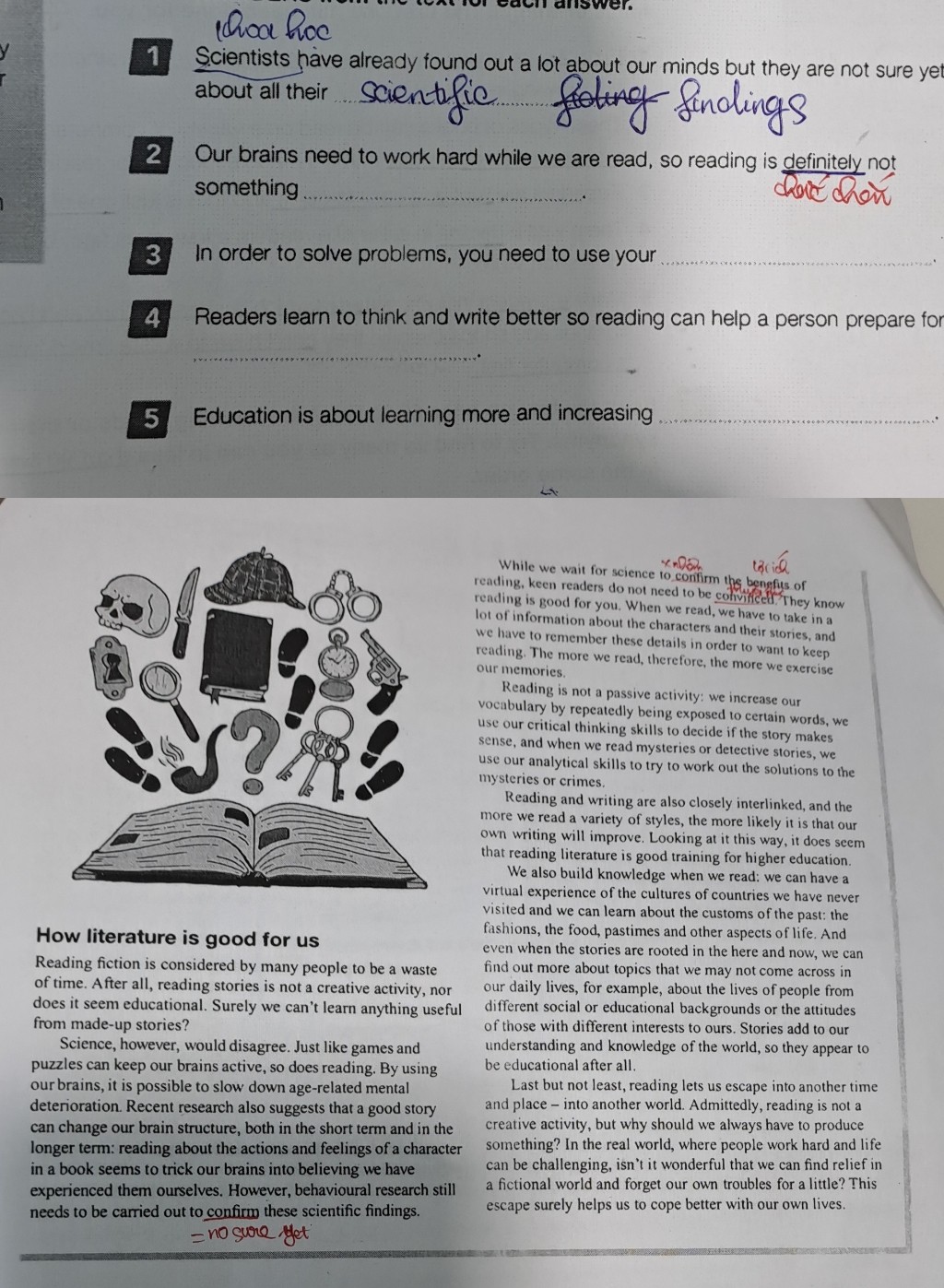 2. Our brains need to work hard while we are reading, so reading is definitely not a passive activity.