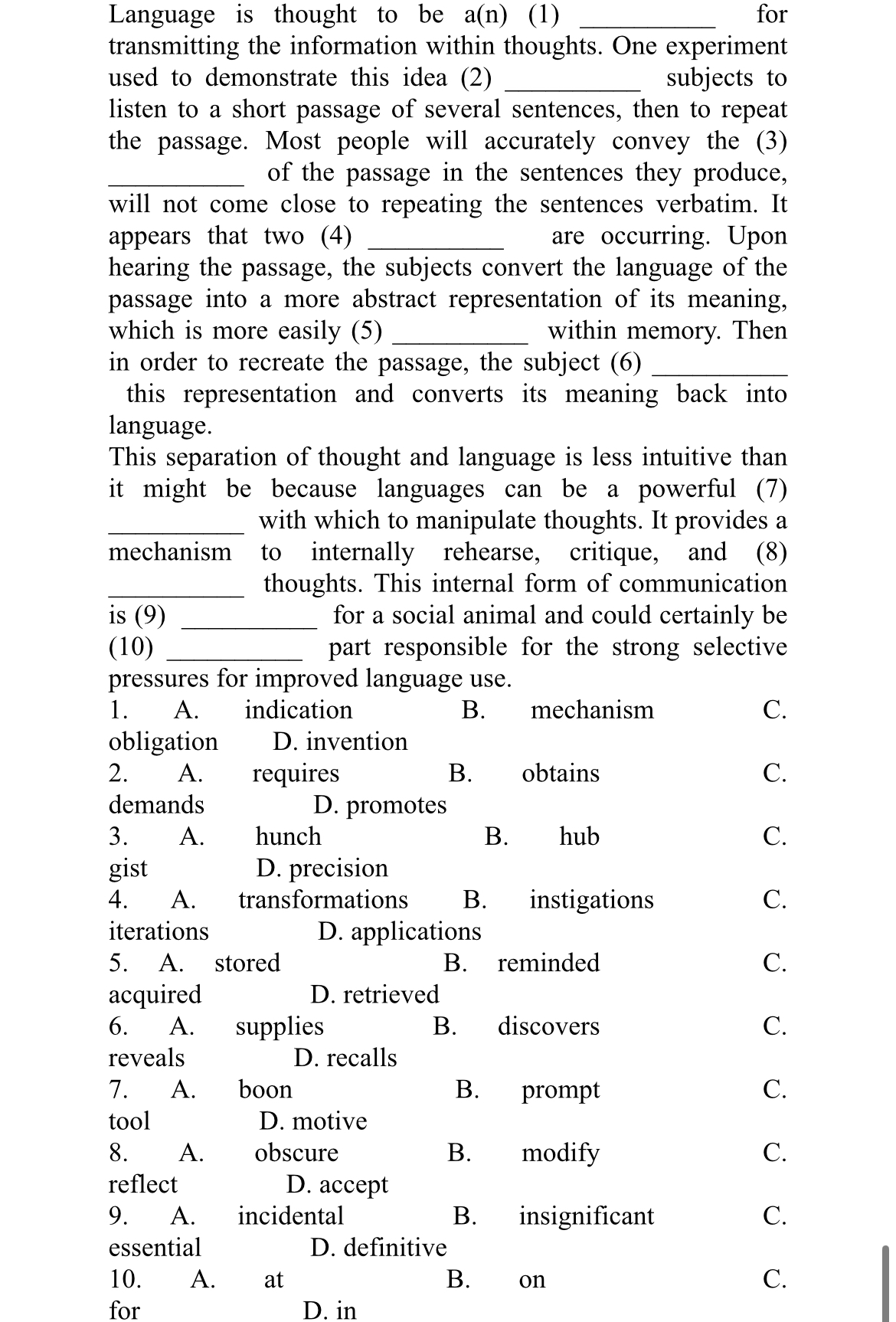 6. The car in front was going very slowly, so John overtook (TAKE)it.