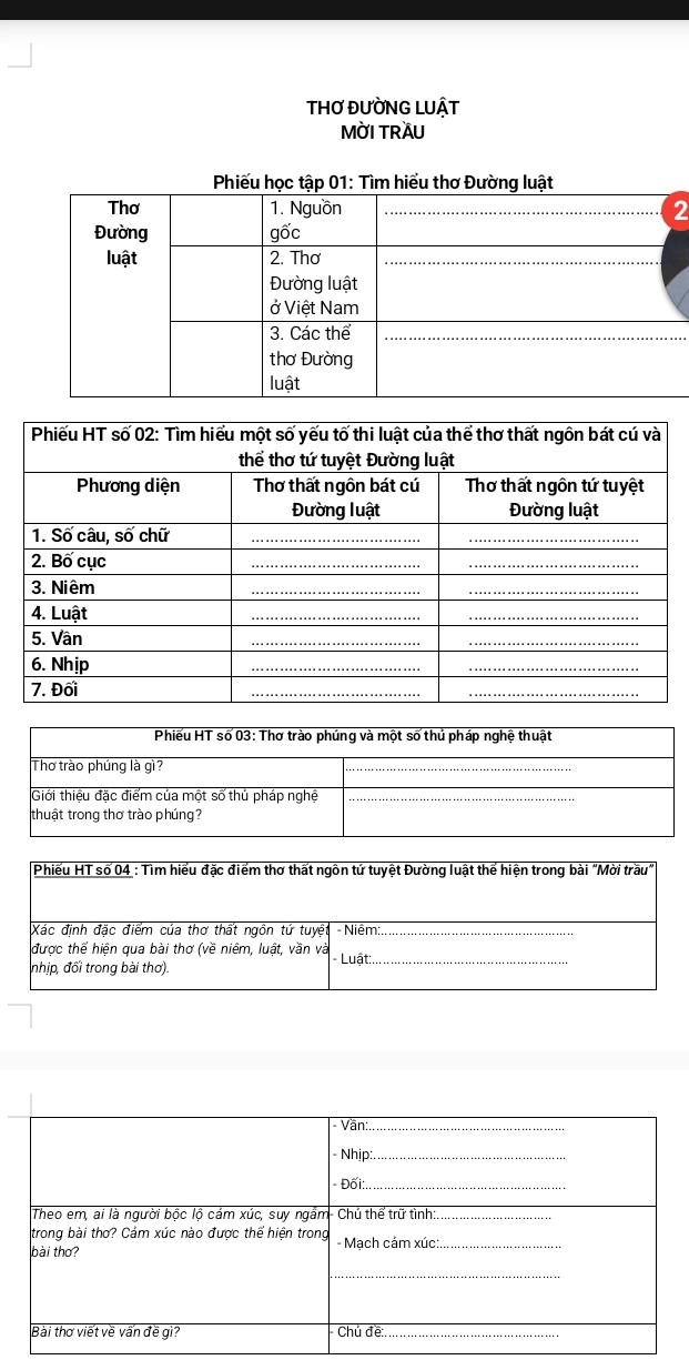 PHT số 1: Tìm hiểu thơ Đường luật.