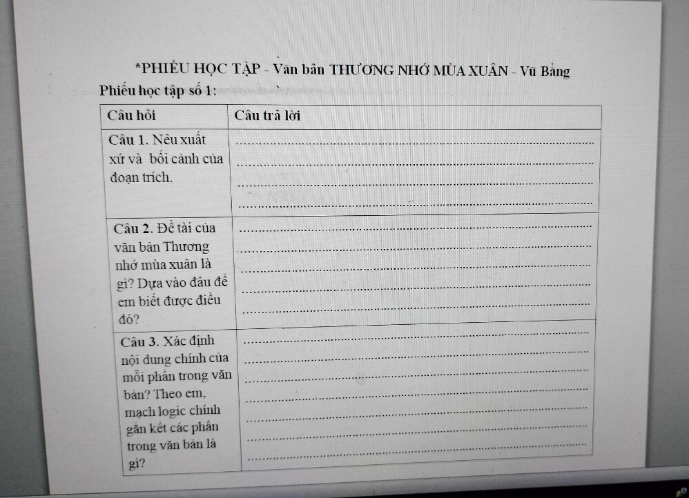 - Theo em, mạch logic chính gắn kết các phần của văn bản là: suy nghĩ, cảm nhận của nhà văn về cảnh sắc mùa xuân.