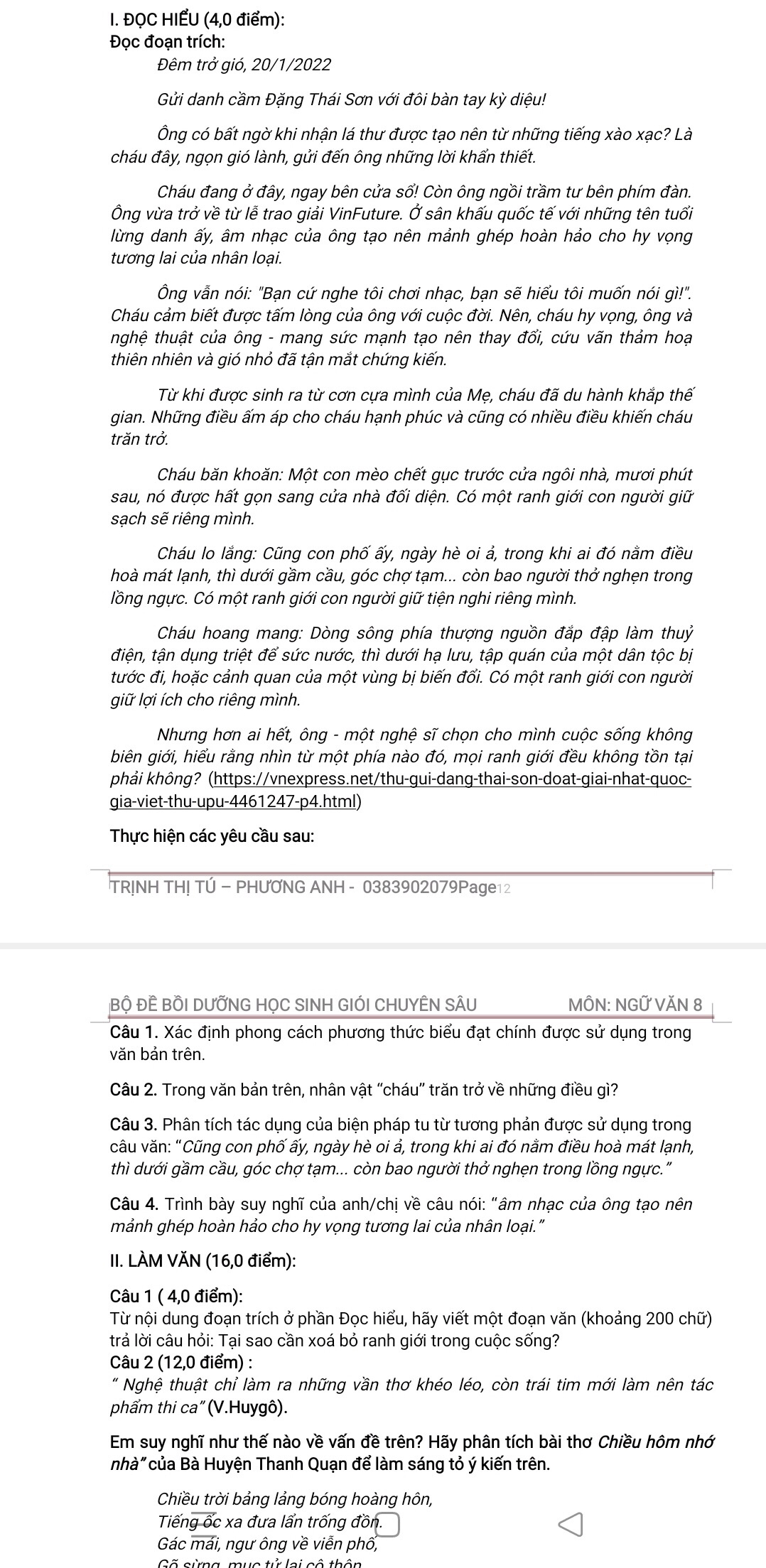 Câu 2: Theo văn bản, nhân vật “cháu” trăn trở những điều: