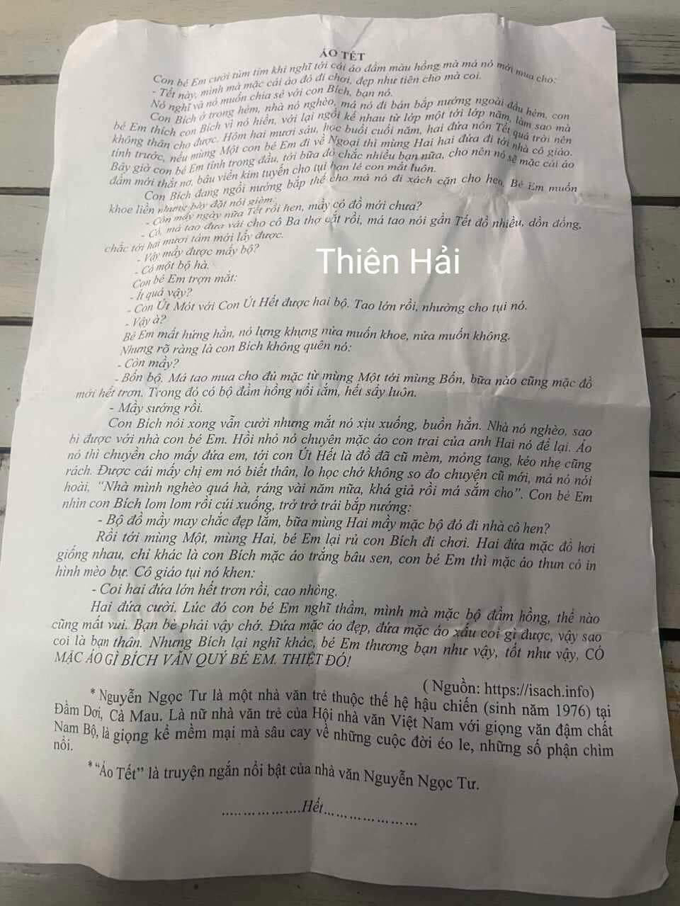 Có thể nói văn bản “Áo Tết” của Nguyễn Ngọc Tư là một truyện ngắn xuất sắc cho thấy cái nhìn ấm áp và nhân hậu của nhà văn về cuộc sống. Thông qua trang văn người đọc khâm phục cái tâm và đặc biệt là cái tài của nhà văn khi đã có sự khám phá và phân tích tâm lý nhân vật trẻ em rất đặc sắc