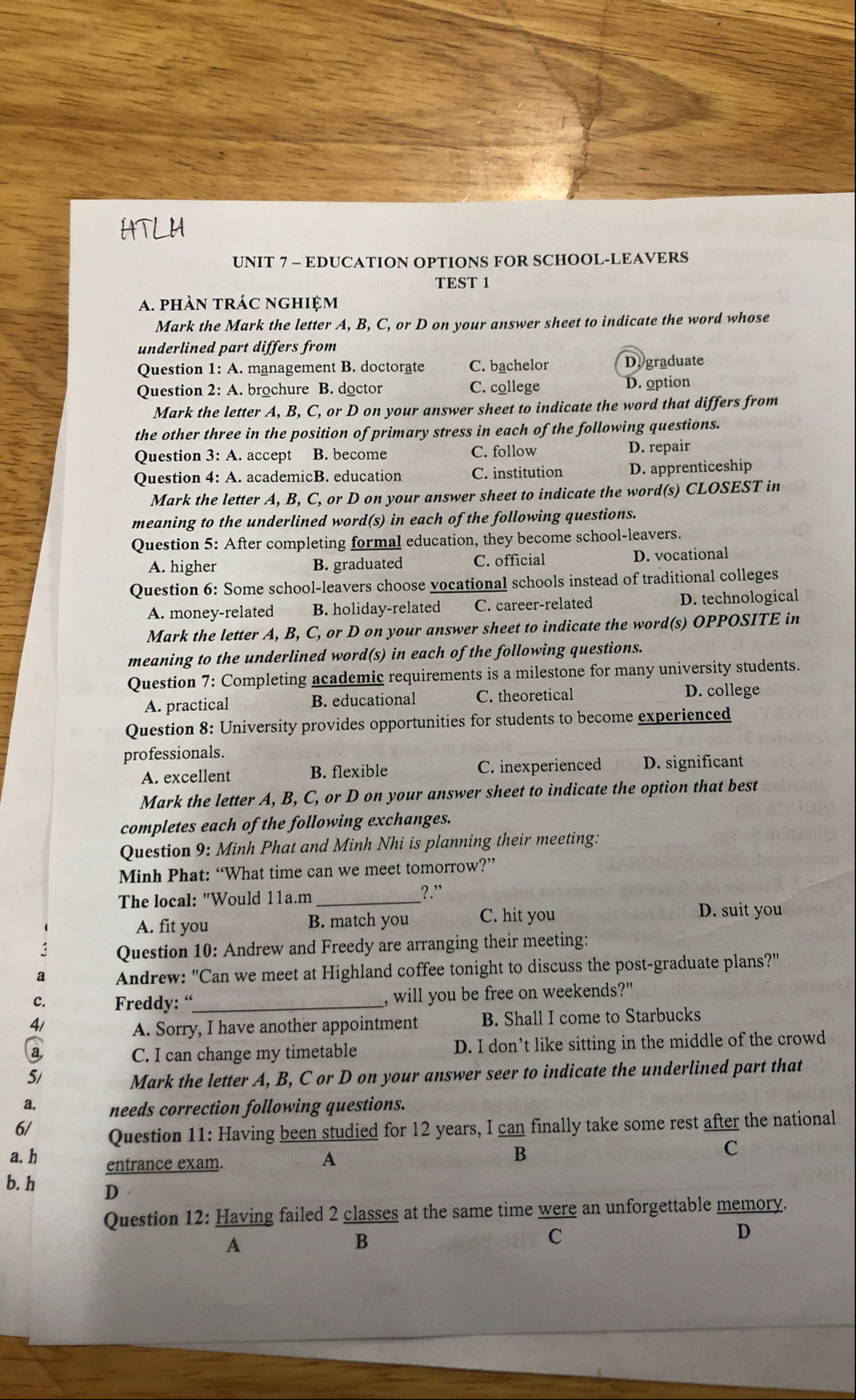 Mark the letter A, B, C or D on your answer seer to indicate the underlined part that