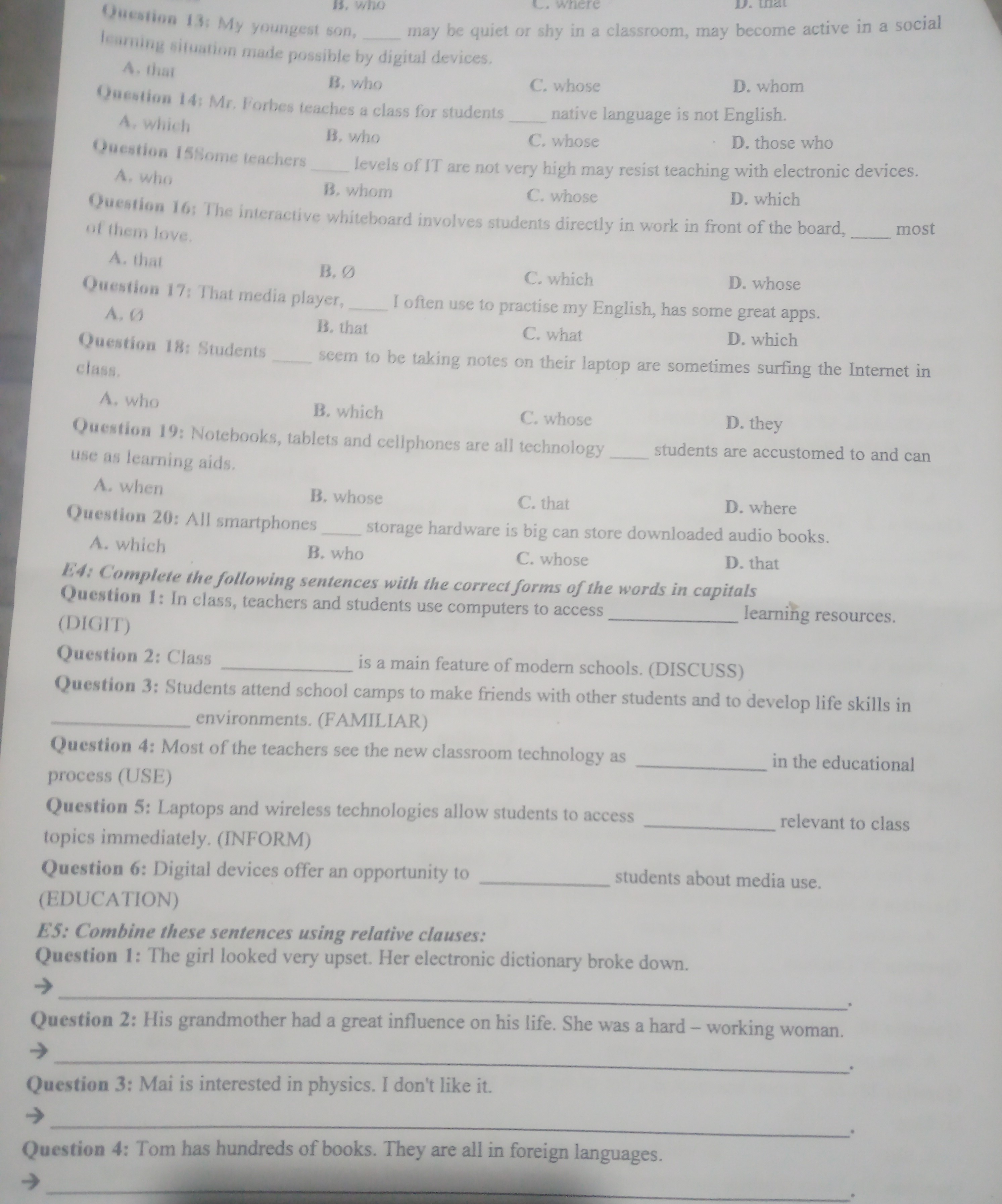 1. The girl whose electronic dictionary broke down looked very upset.